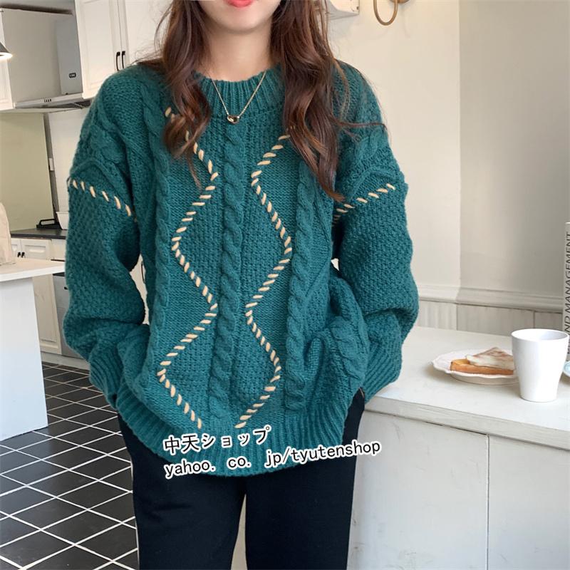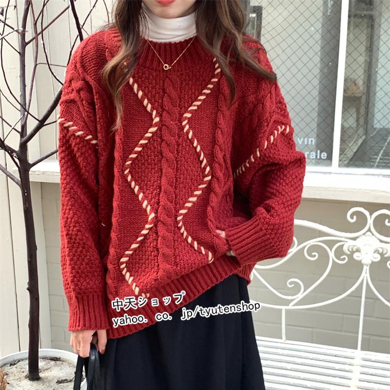 クリスマスセーター セーター レディース ニット トップス ニットセーター 丸首 プルオーバー 暖かい ニットトップス レトロ 韓国風 ゆったり カジュアル 着痩せ