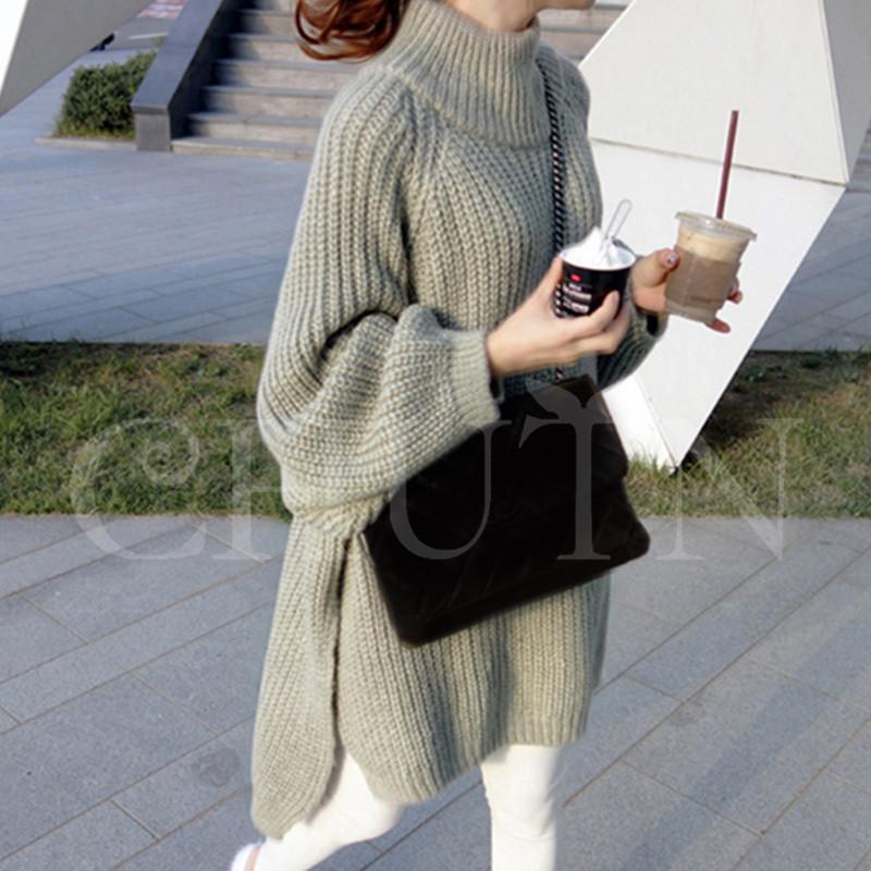 ニットセーター ハイネック セーター レディース 50代40代 トップス 長袖 スリット バルーンスリーブ 無地シンプル前後差プルオーバーゆったり体型カバー韓国風