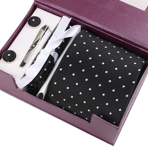 【3日出荷】メンズビジネススーツ用 8.5cm ドット柄ネクタイ ポリエステル ギフトボックス プレゼント