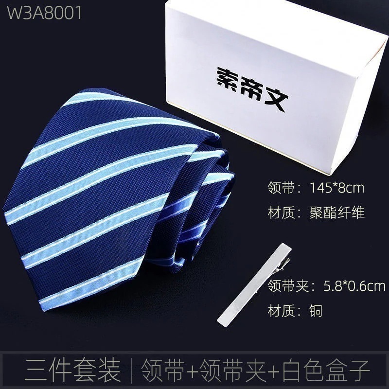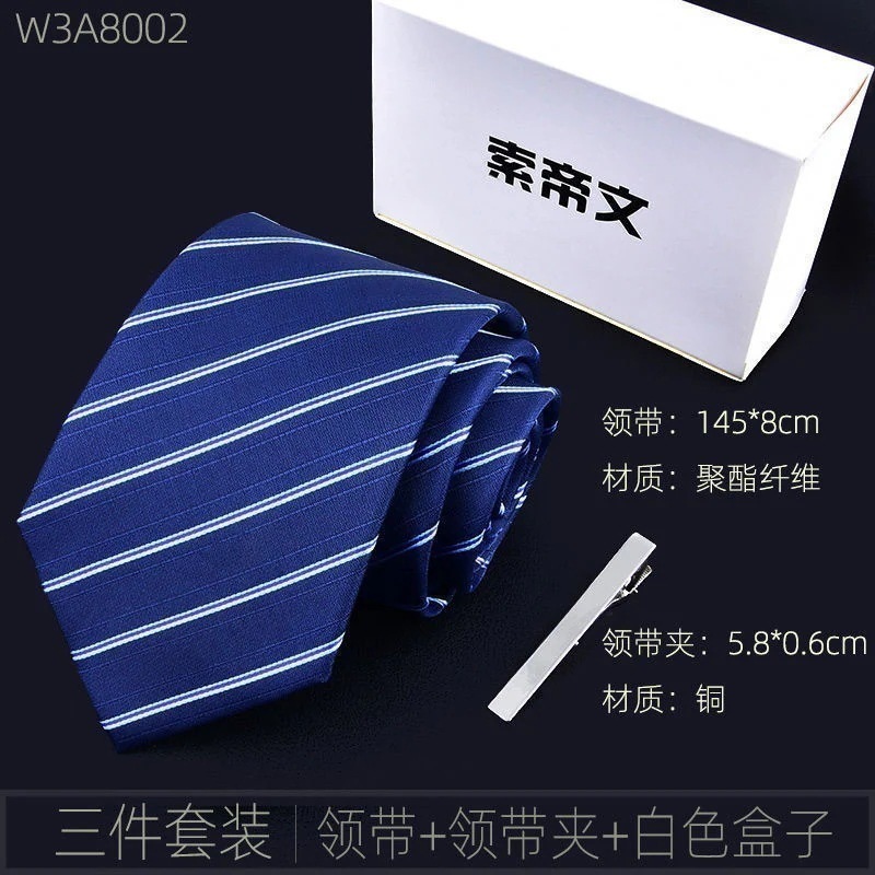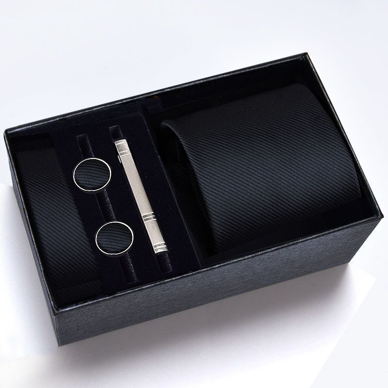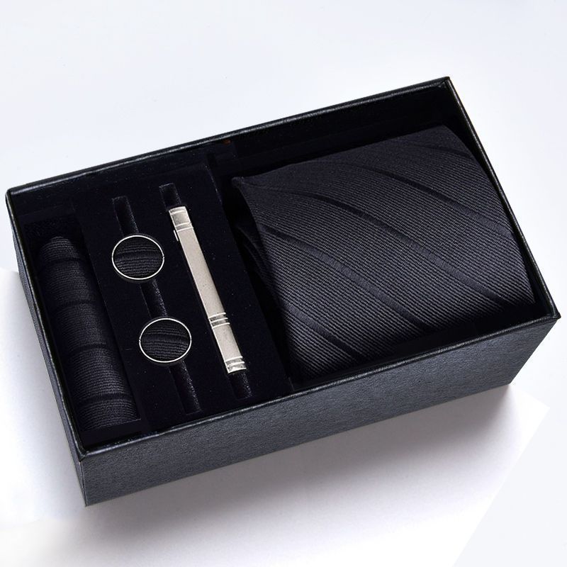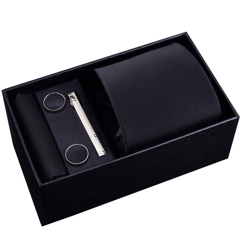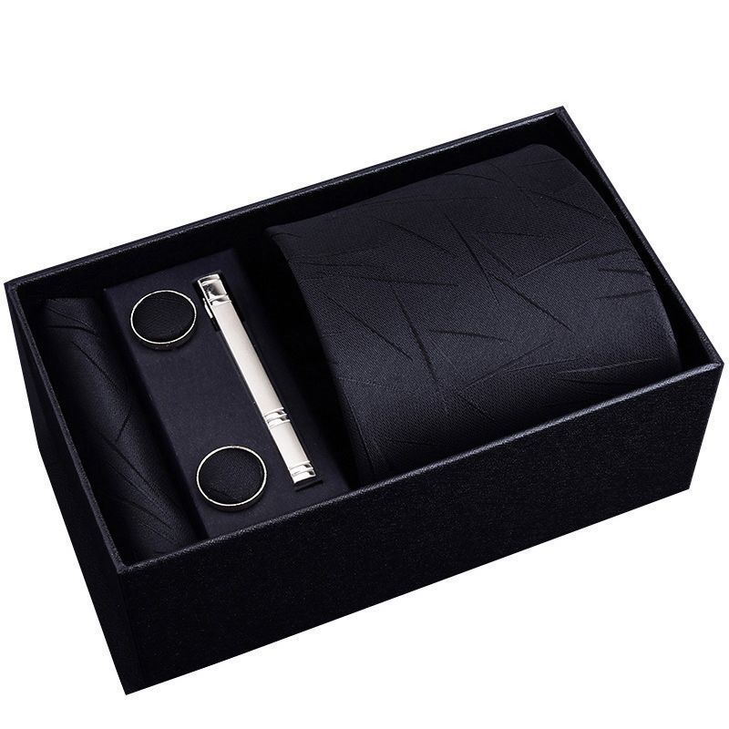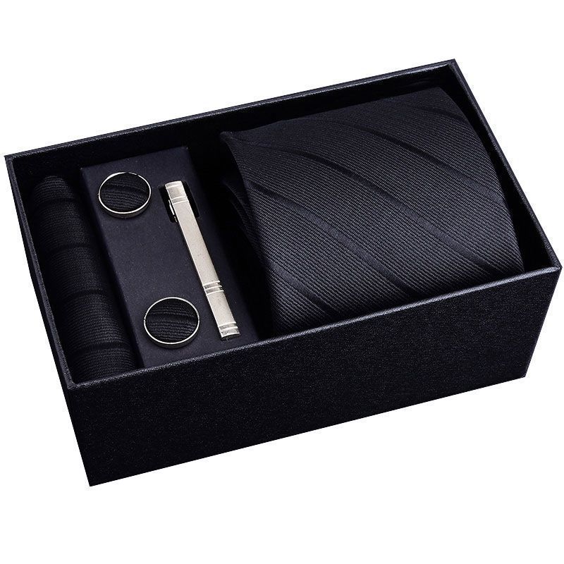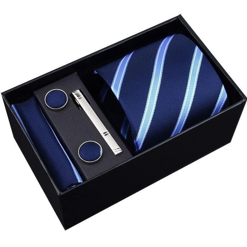 【3日出荷】メンズプリタイドネクタイ セット ビジネス ストライプ柄 ブラック/レッド 結婚式 ギフトボックス