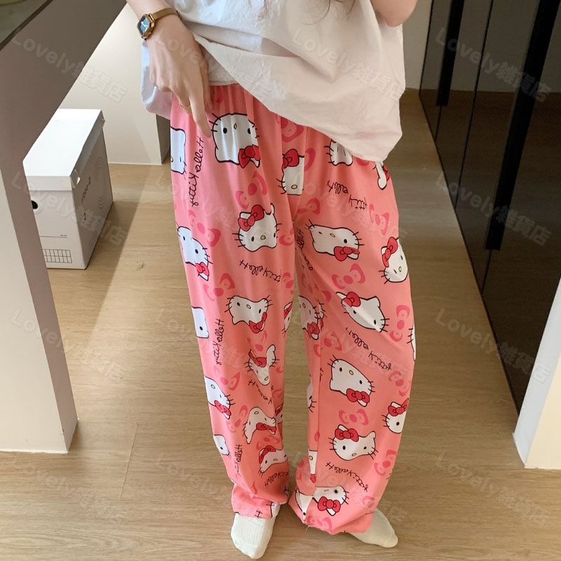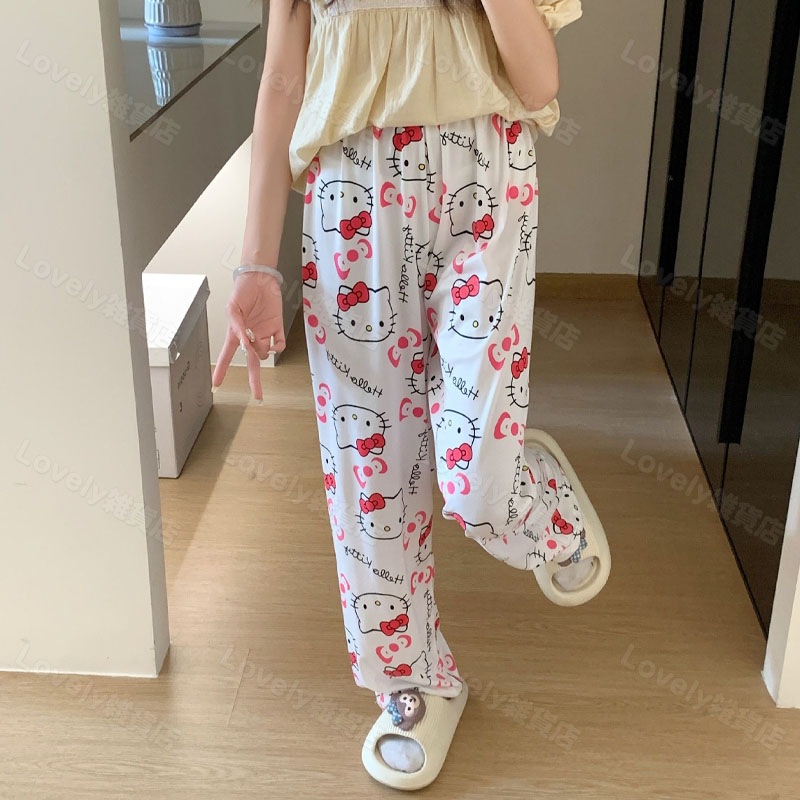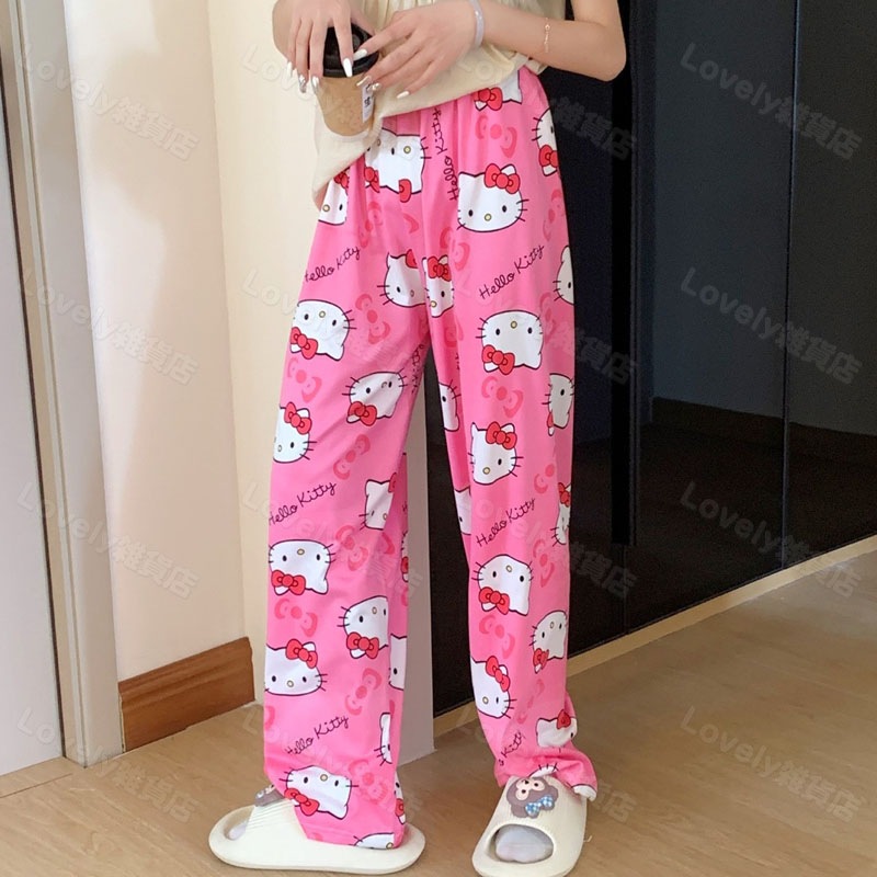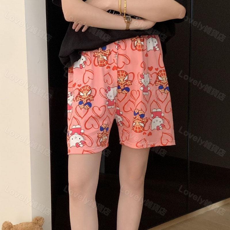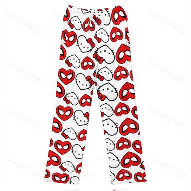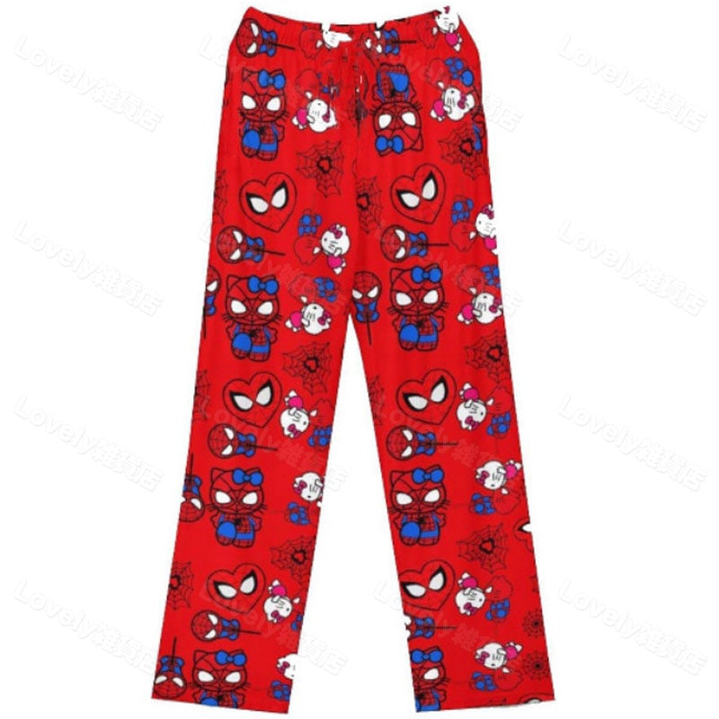薄手ルームパンツ キティちゃん パジャマ 修学旅行 部屋着 スパイダーマン ズボン 夏用 ルーズ 着痩せ ガーリー ユニセックス