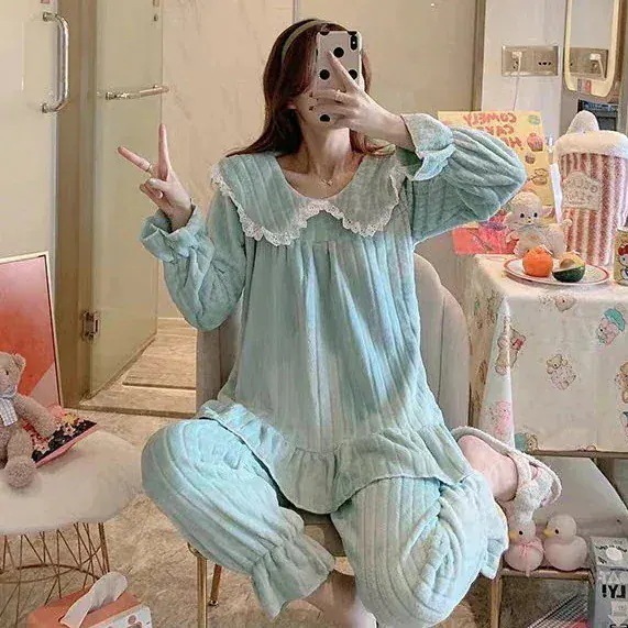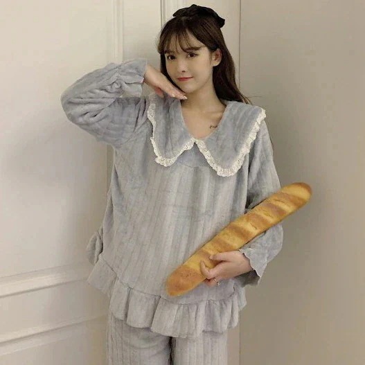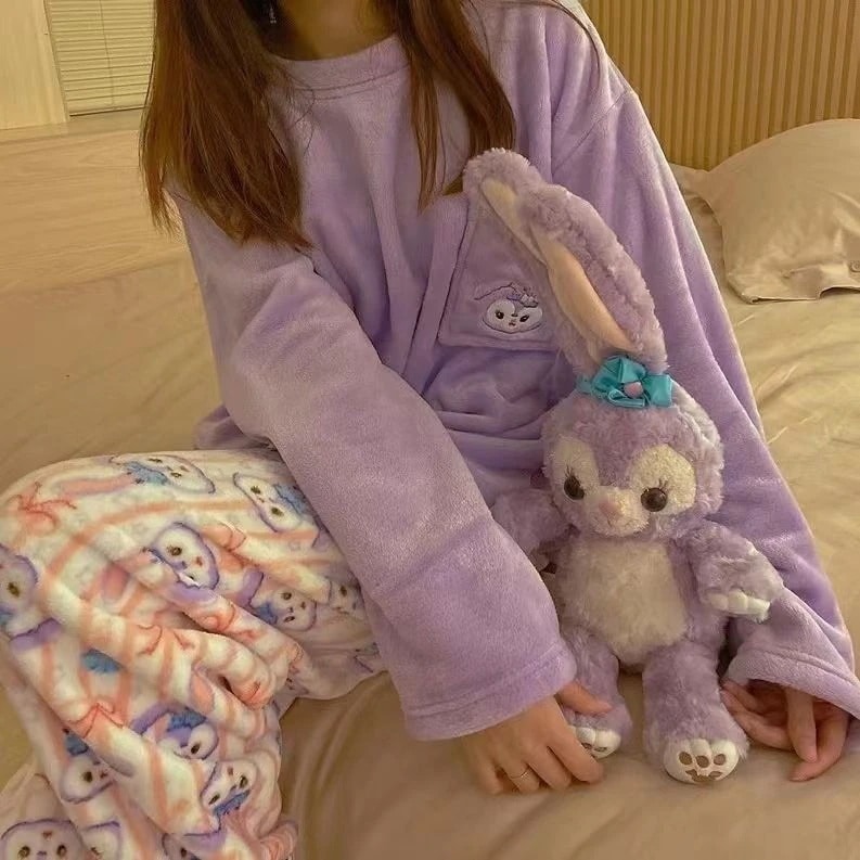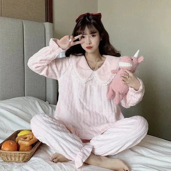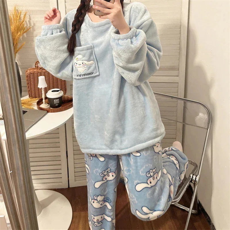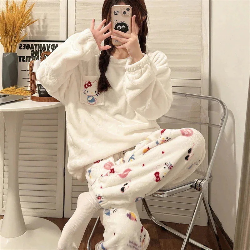 【速達!】ハローキティハローキティパジャマ女性フランネルクルーネック漫画かわいいラウンジウェアセット キティ