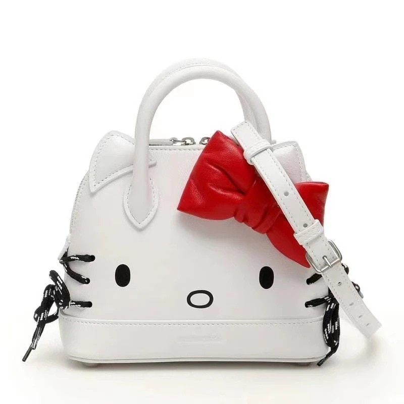 ハローキティのリボンが大きく顔に猫耳の形をしたハンドバッグ女性2023新型甘クールギャルの斜めがけショルダーバッグ