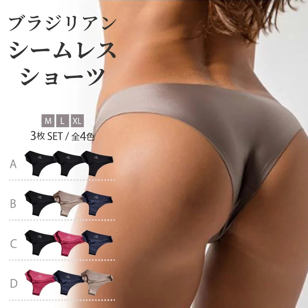 ブラジリアン ショーツ 3枚セット レディース シームレス ショーツ 下着 パンツ ブラジリアンカット 響かない サテン 速乾 お得 大きいサイズ 薄型-z01