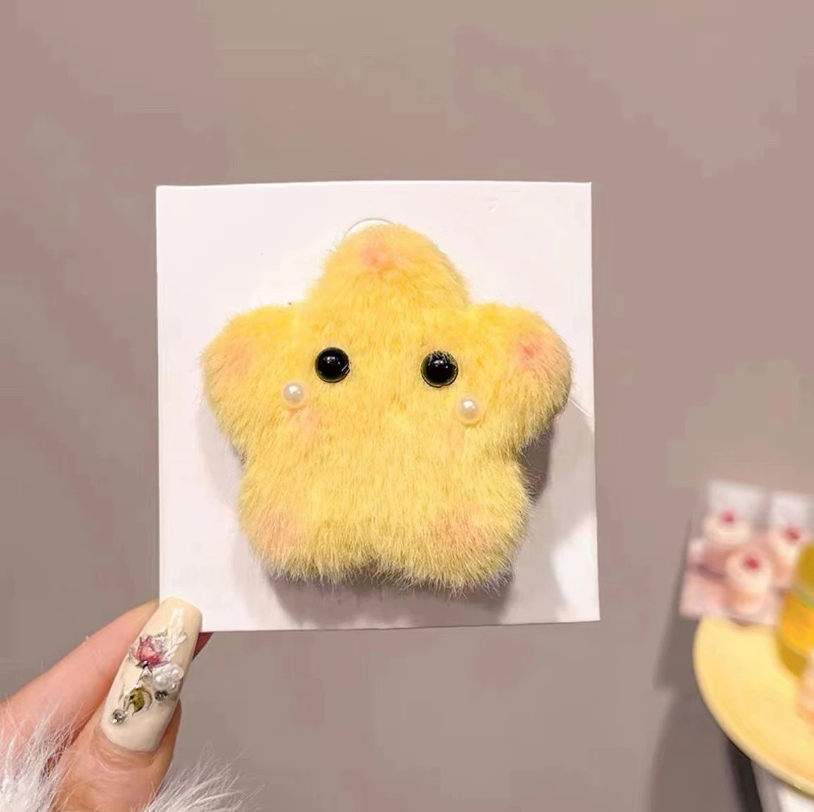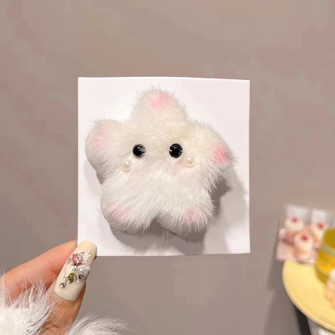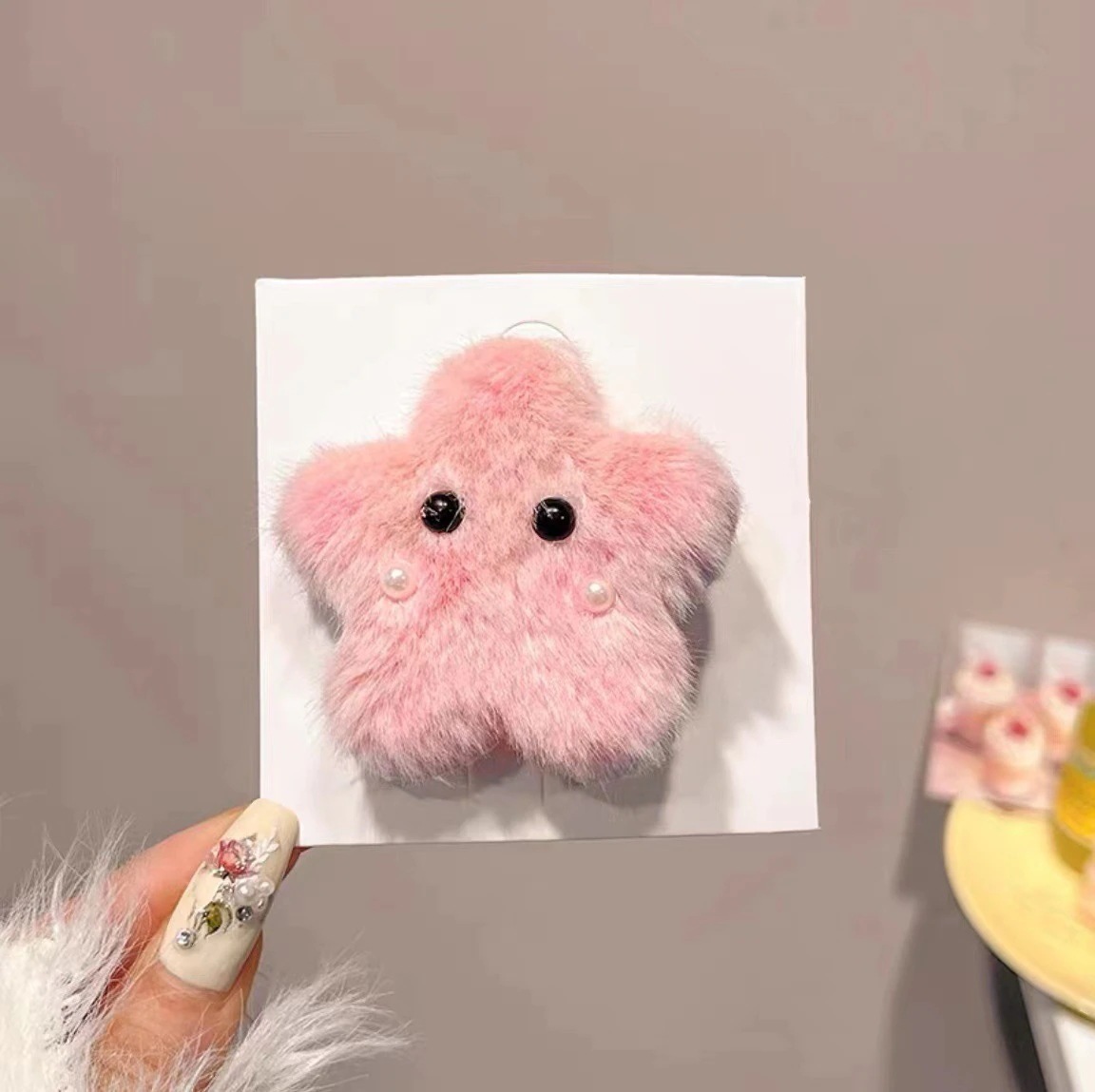 可愛いぷっくりモコモコチーク星のヘアピン柔らかいモコモコ前髪クリップ髪留め留め具柔らかい女の髪飾り