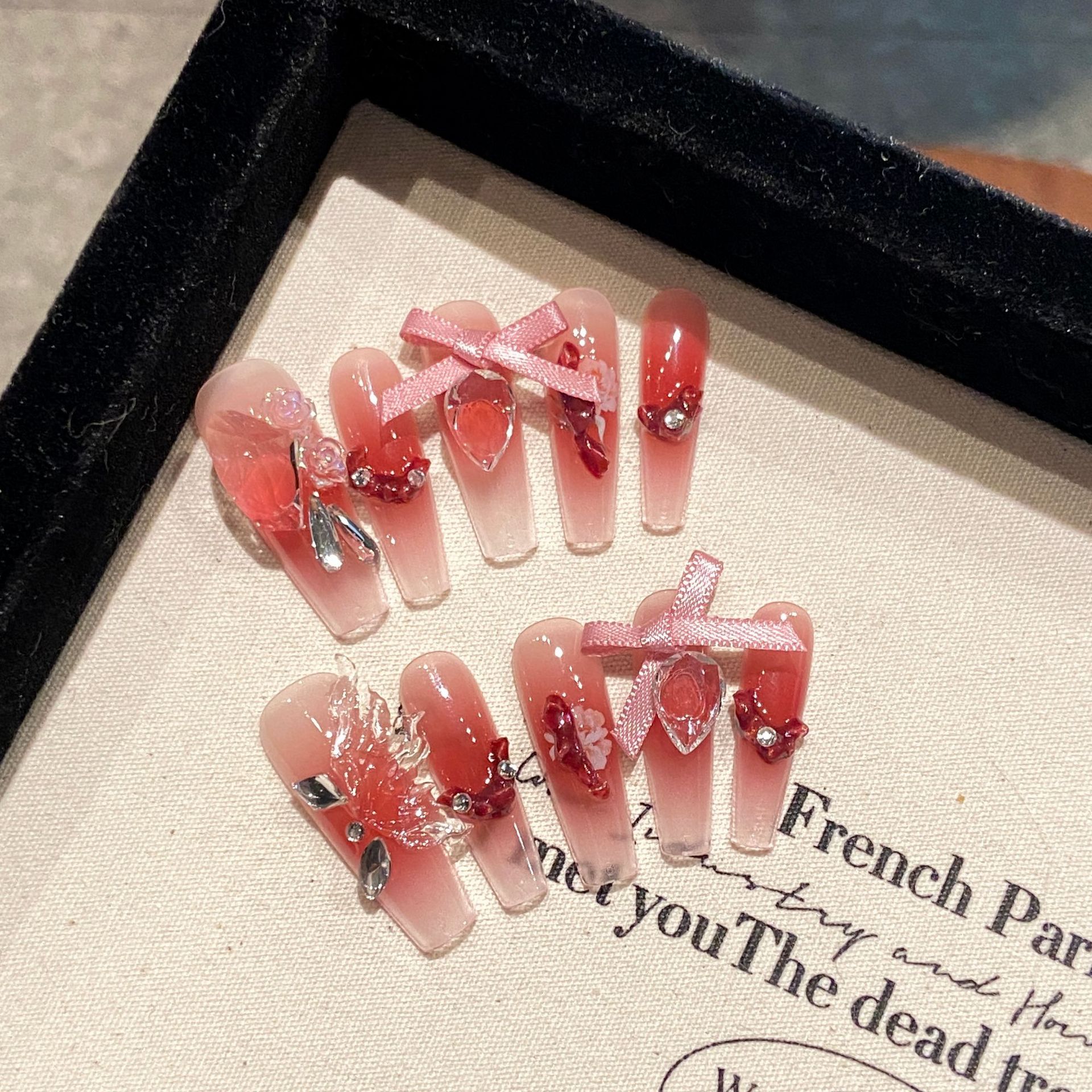 赤いヌードの透明な氷のように透明な高冷立体蝶のステッカーダイヤモンドホットガールのつけ爪