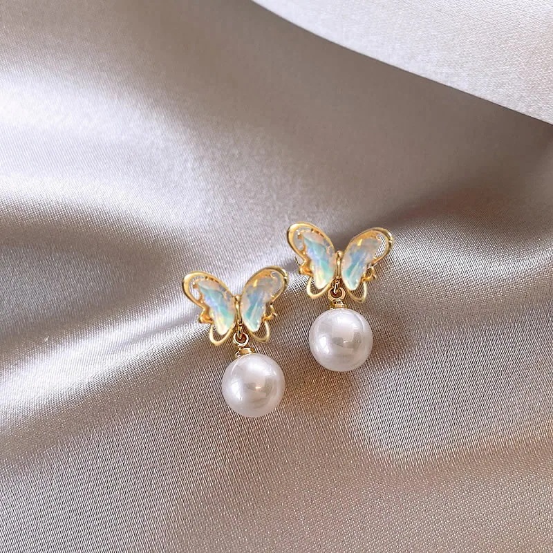 春の耳元をおしゃれに S925シルバー針蝶真珠イヤリング女性2025新しいイヤリングイヤリング
