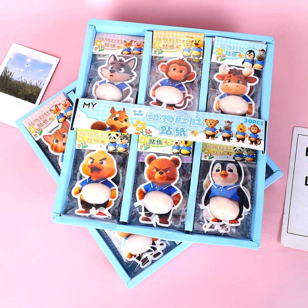 スクイーズ ステッカー 30点セット 立体 シール もちもち ご褒美シール 猿 マシュマロ 3D くま お腹 パンダ 30点セット ぷにぷに ライオン