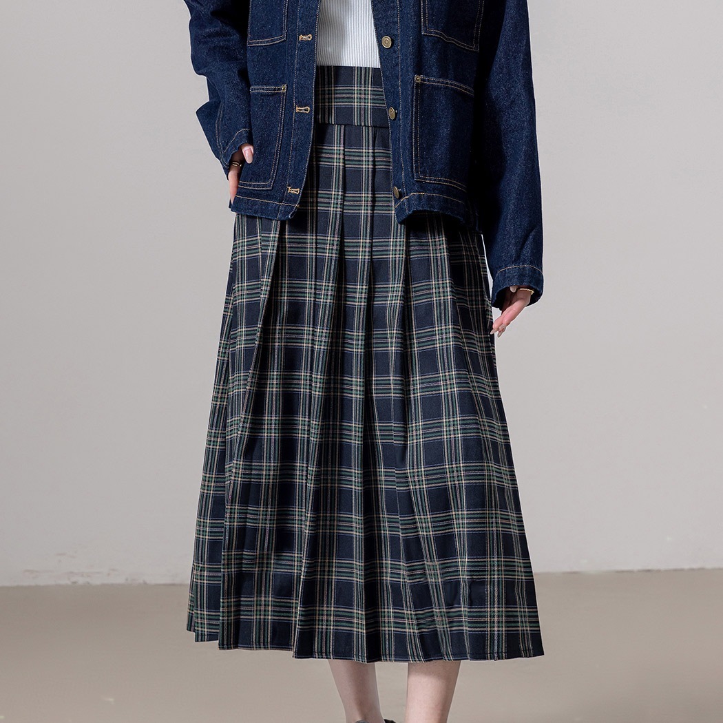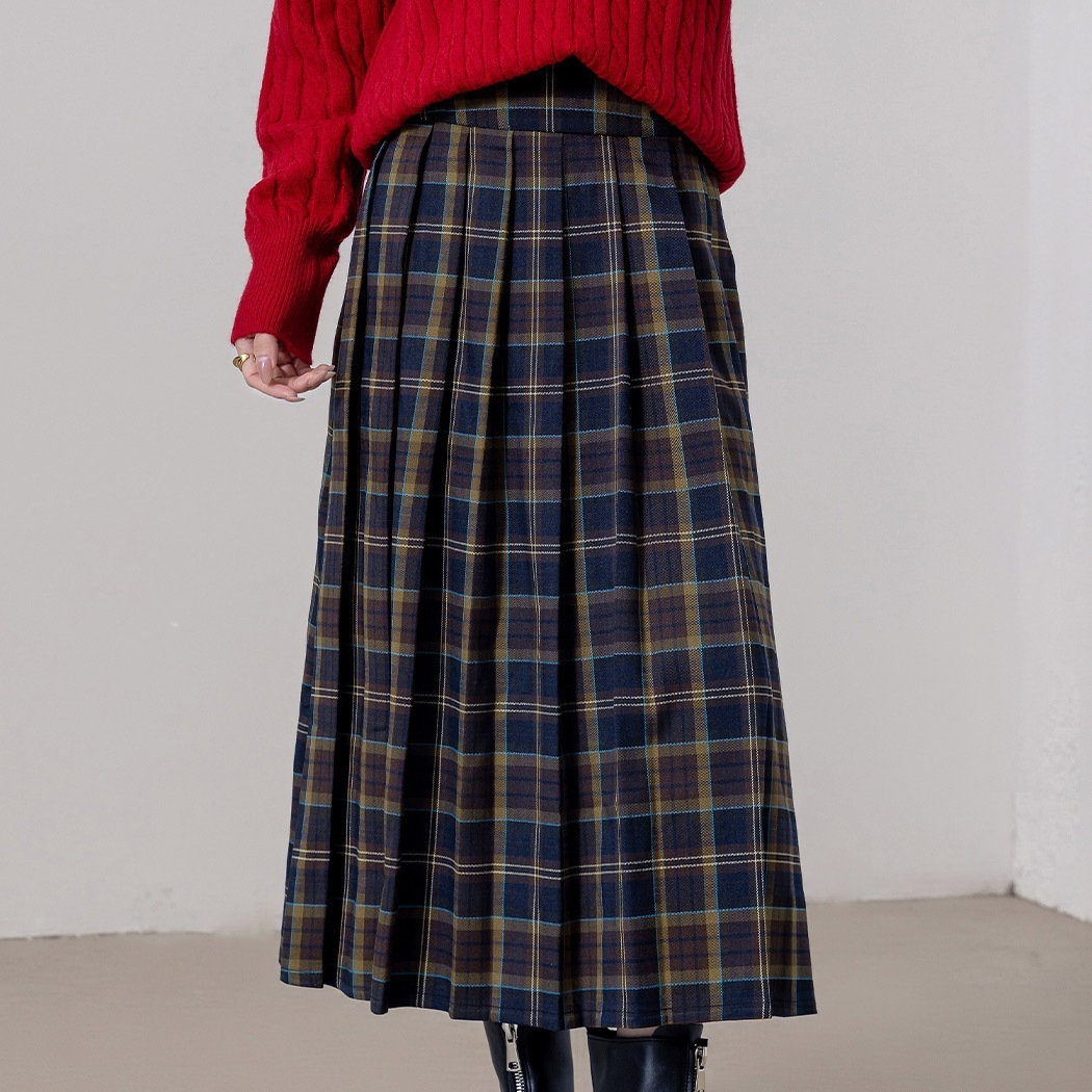 チェック プリーツスカート ロング レディース Aライン フレア きれいめ 膝下丈 チェックスカート ボトムス ハイウエスト 黒 秋 冬