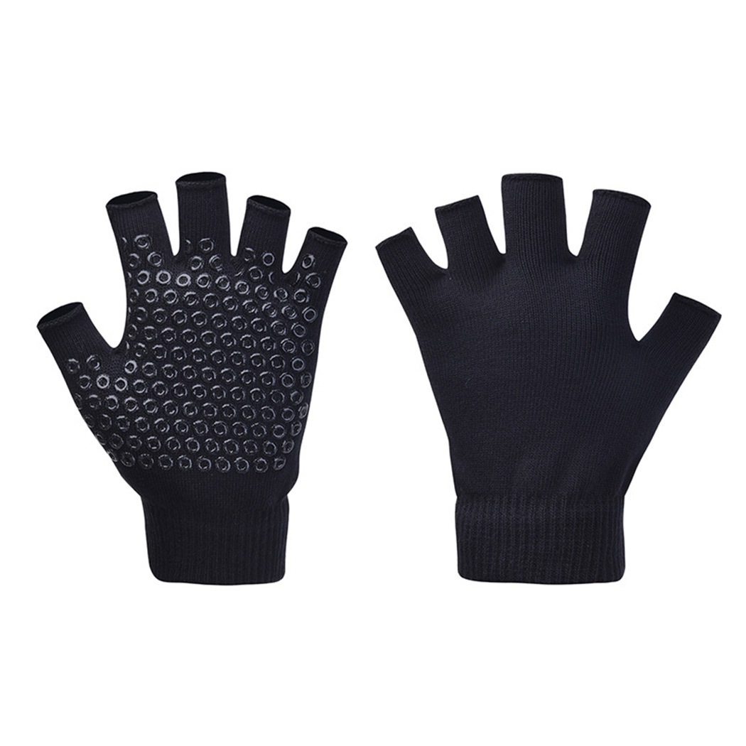 ヨガ グローブ 手袋 レディース フィンガーレス 滑り止め付き 指なし ハーフフィンガ― 黒 無地 シンプル
