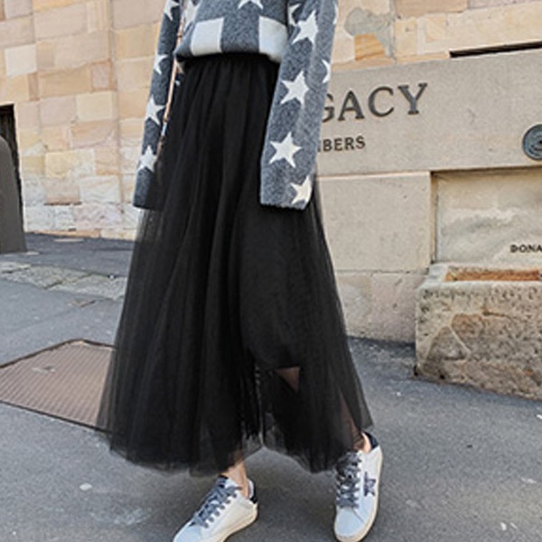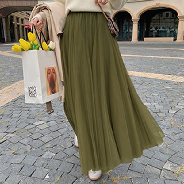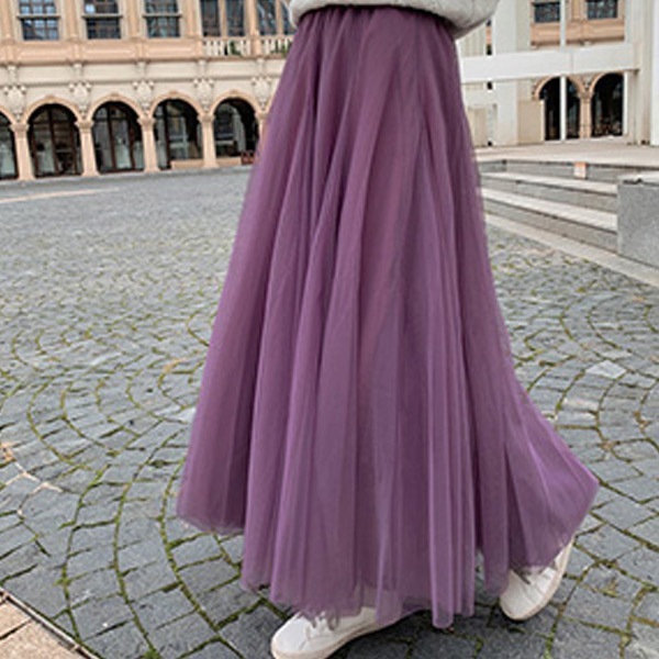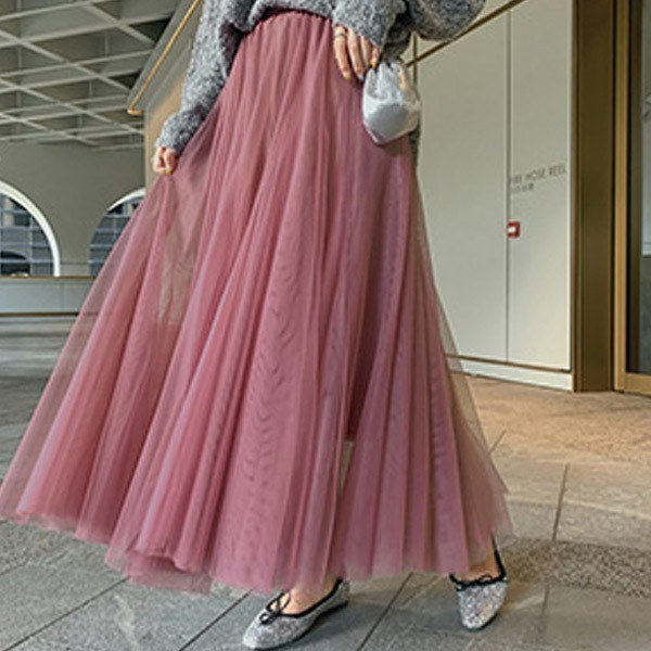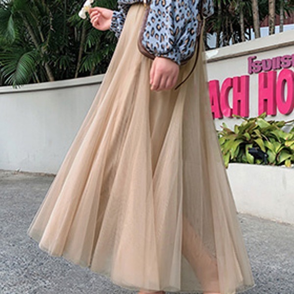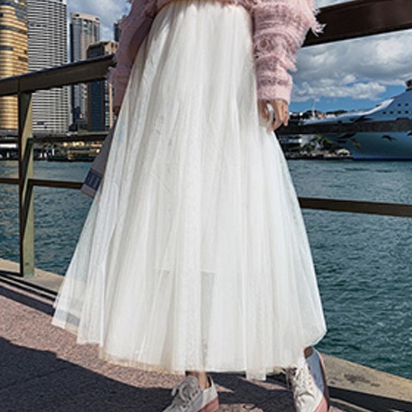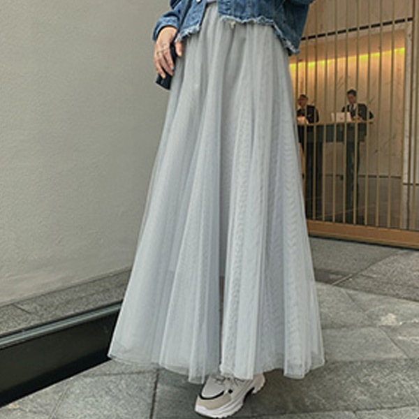 フレア チュールスカート シアー ロング 夏 レディース ボトムス ボリューム 薄手 ウエストゴム マキシ カジュアル エレガント 秋 春 黒 白