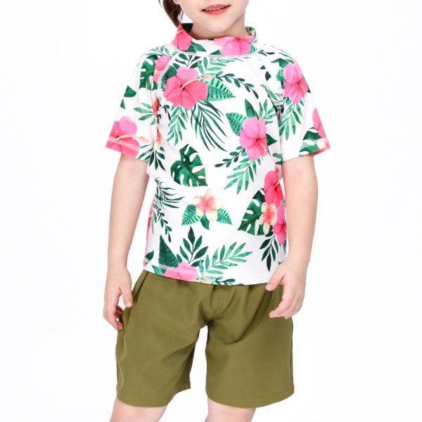 ラッシュガード キッズ 女の子 男の子 ユニセックス 半袖 Tシャツ リゾートファッション 素材トップス 子供用