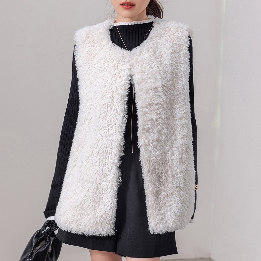 レディース トップス ファーベスト コーデ プードル ファー ベスト 存在感 もこもこ ふわふわ 大きすぎない 体型カバー 白 黒 秋 冬