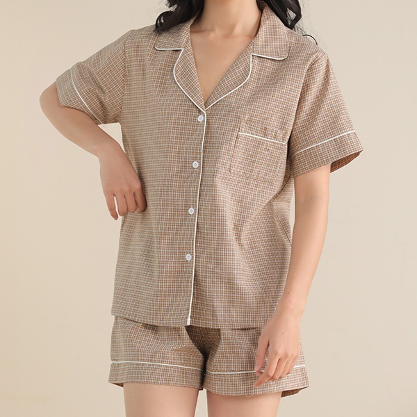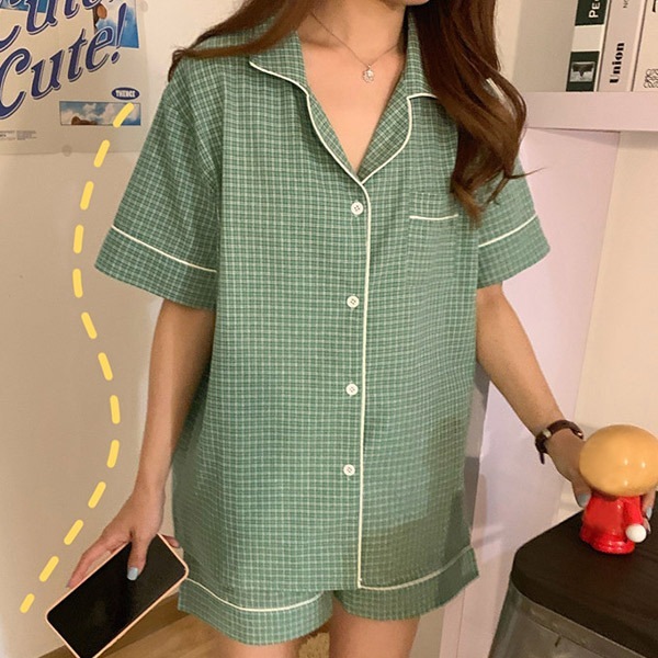 ルームウェア 夏 レディース 可愛い パジャマ 上下セット 半袖 短パン チェック 春