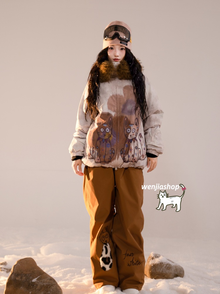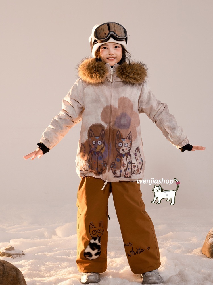 高品質のスキー用具! スノーボードウェア 20上下セット キッズ 子供 男の子 女の子 メンズ レディース ジャケット パンツ ズボン 猫柄 可愛い 3L 風 スノボウェア スノーウェア スキーウェア
