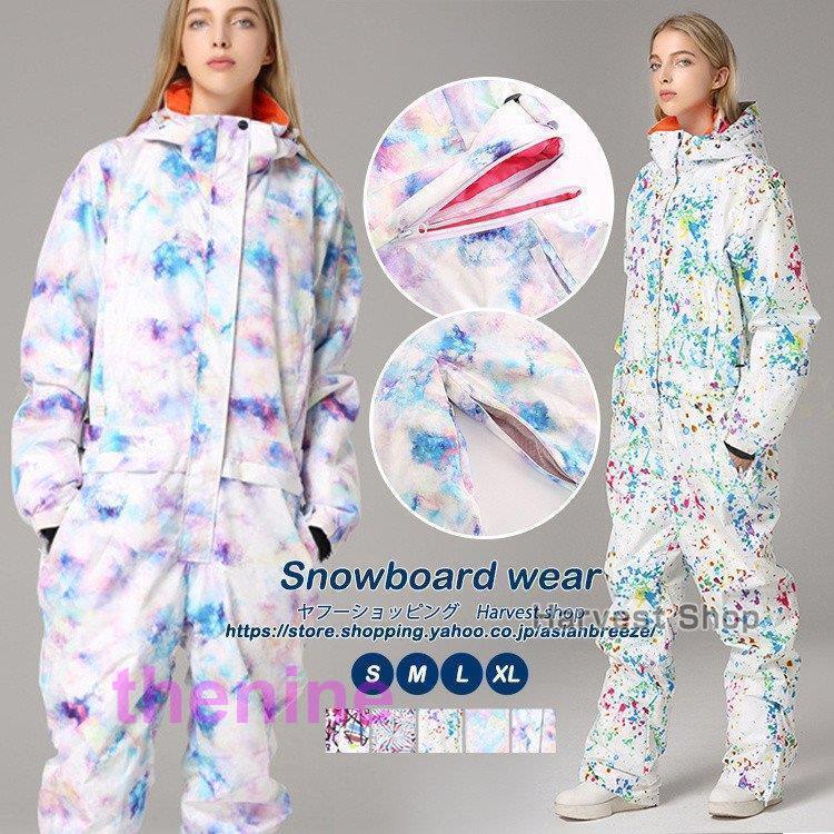 高品質のスキー用具!スノー ウェア ワンピース メンズ レディース スノーボードウェア スキーウェア つなぎ 花柄 腰チャック 通気性 2枚購入で200円OFF