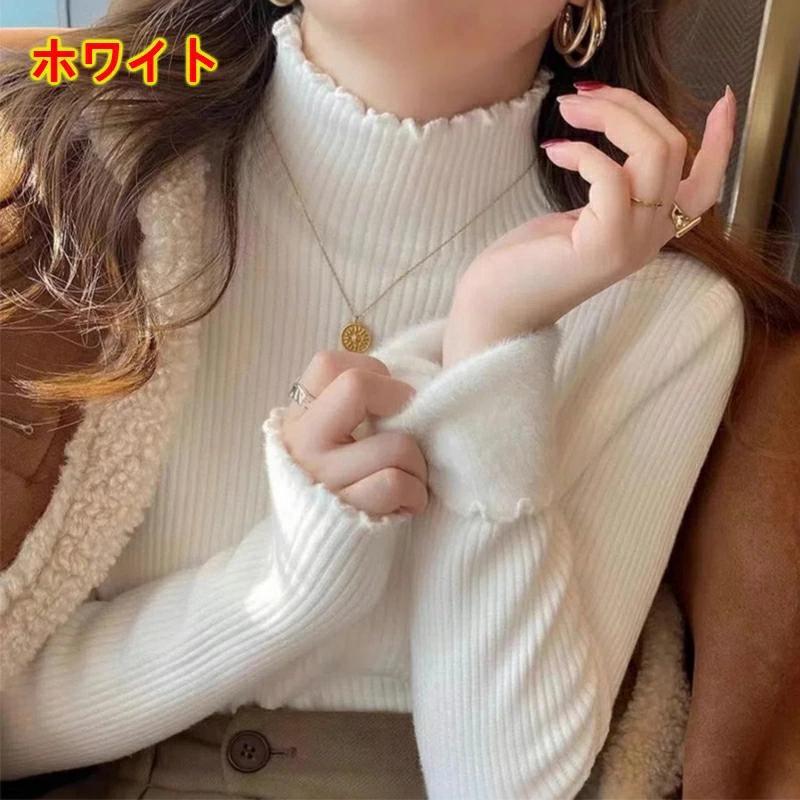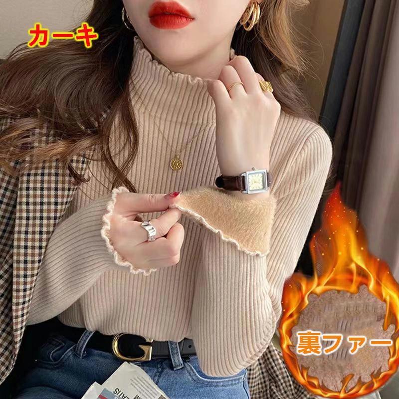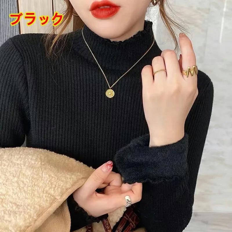 ハイネ【本日限定】裏起毛 ハイネック ニット セーター トップス 裏ファー レディース フリルネック フリル 長袖 タートルネック 暖かい 厚手 きれいめ 秋冬 20代 30代 40代 50代裏起毛 ハイネ