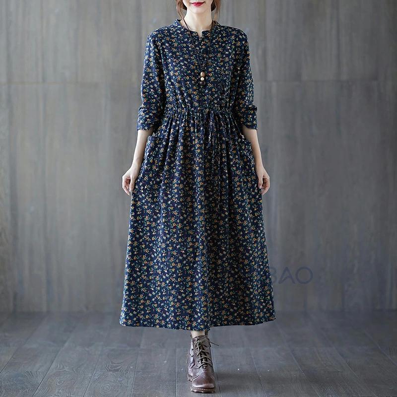 【2026新品発売】本日限定】 ロングワンピース 秋冬 長袖 レディース きれいめ きいサイズ 秋 冬 ワンピース ロング丈 綿 コットン 体型カバー ロングワンピ 総柄 花柄 ゆったりロングワンピー
