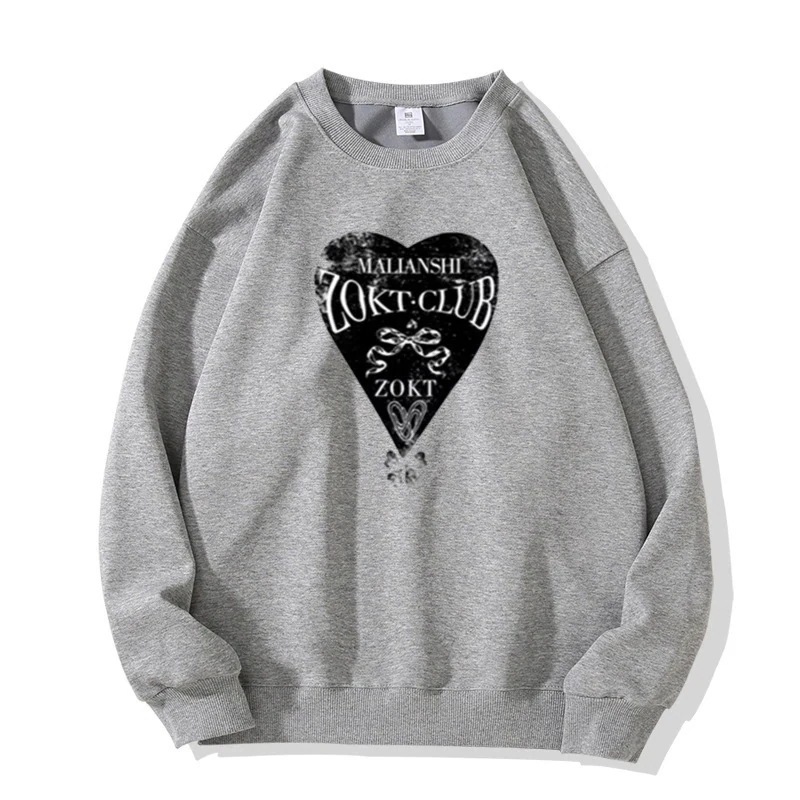 【3日出荷】グレークルーネックトップス アメリカンレターハートデザイン ルーズロングスリーブ パーカー スウェット 春服 レディース母の日