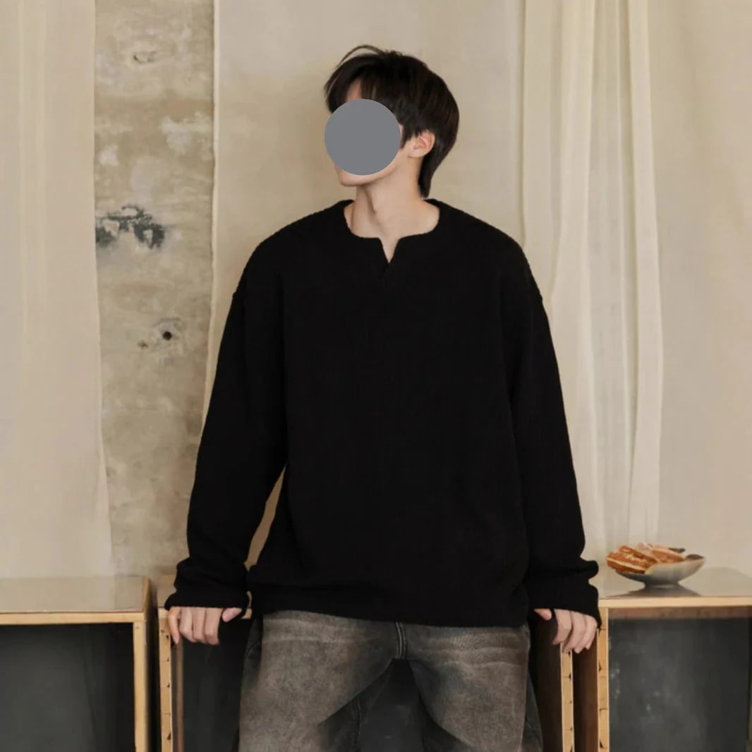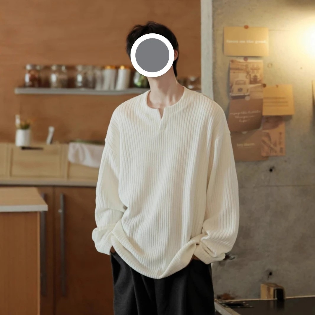 ゆったり風テクスチャーVネック長袖Tシャツ(男性用) 春秋用インナーベースレイヤースウェットアメリカンカジュアルブランドルーズフィットその他トップス