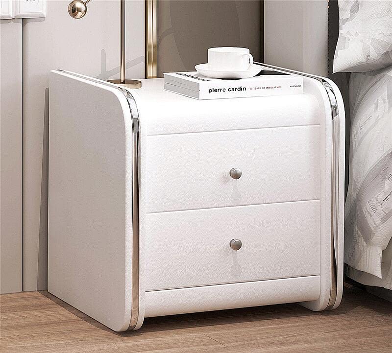 ベッドサイドテーブル 引き出し ナイトテーブル おしゃれ レザー ソファサイドテーブル クローゼットオーガナイザー 寝室のモダンな白いナイトスタンド コーヒー