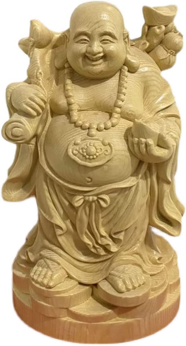 木彫り仏像 布袋さま 置物 桧木製高級木彫り 金運 置物(Size:22cm)