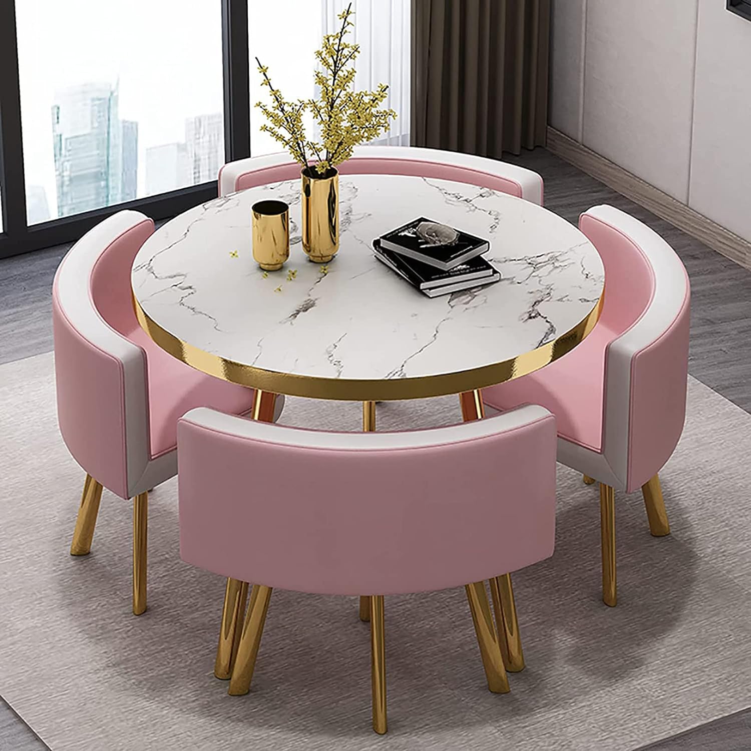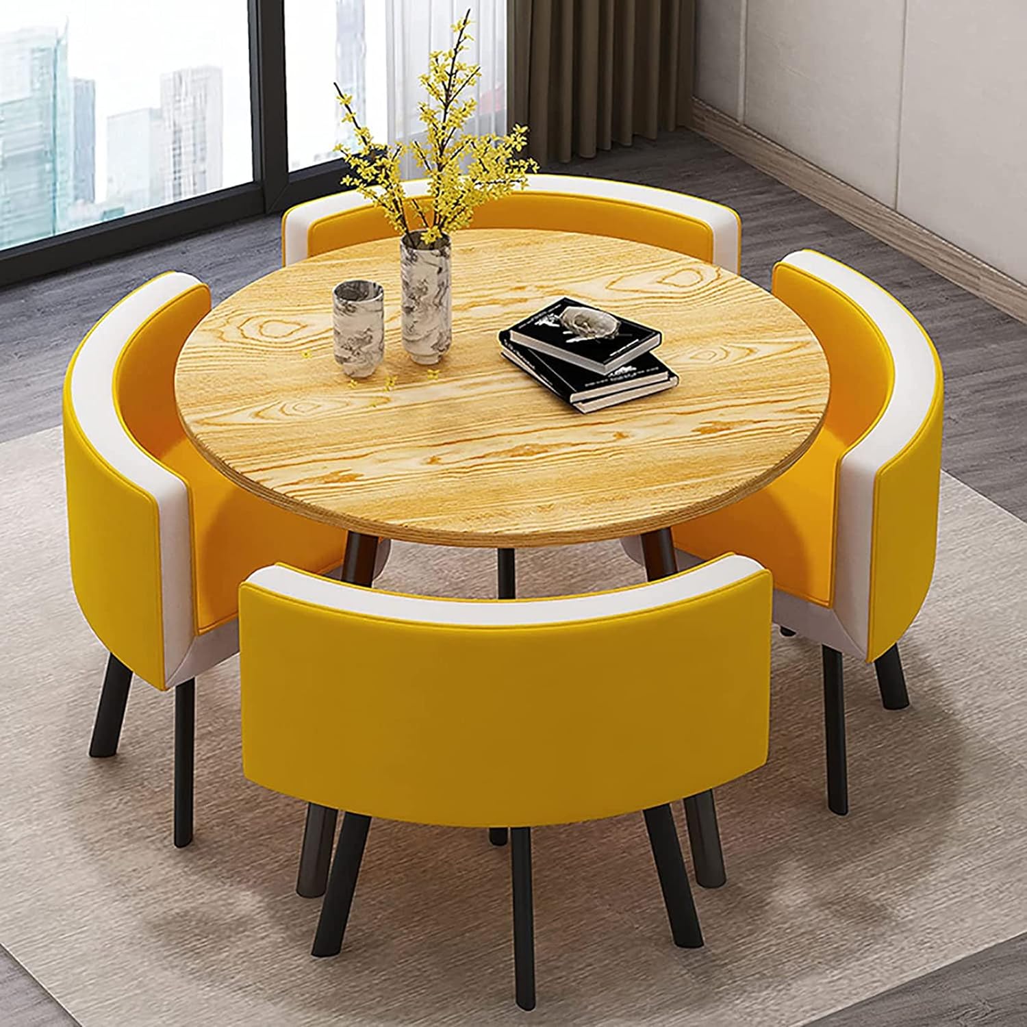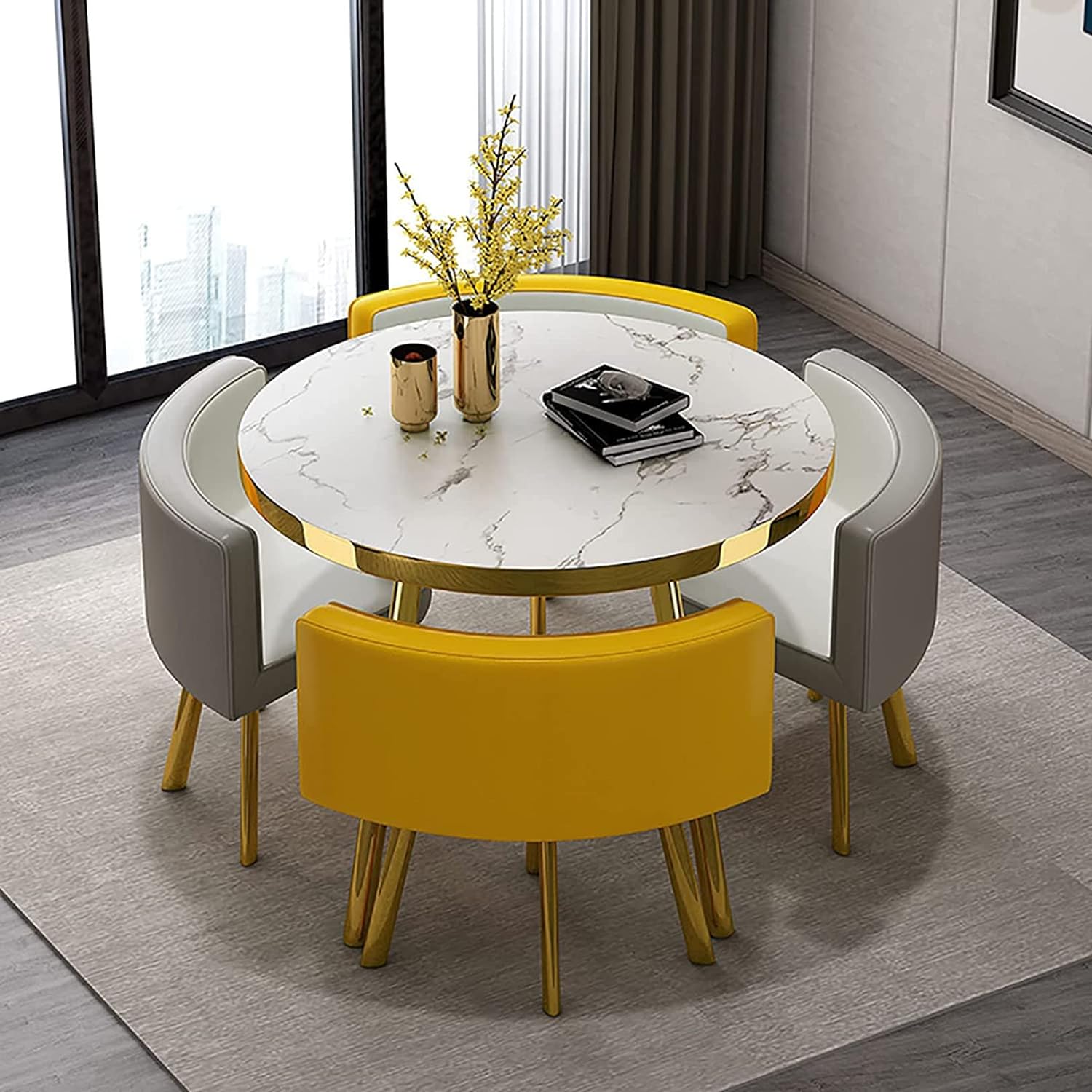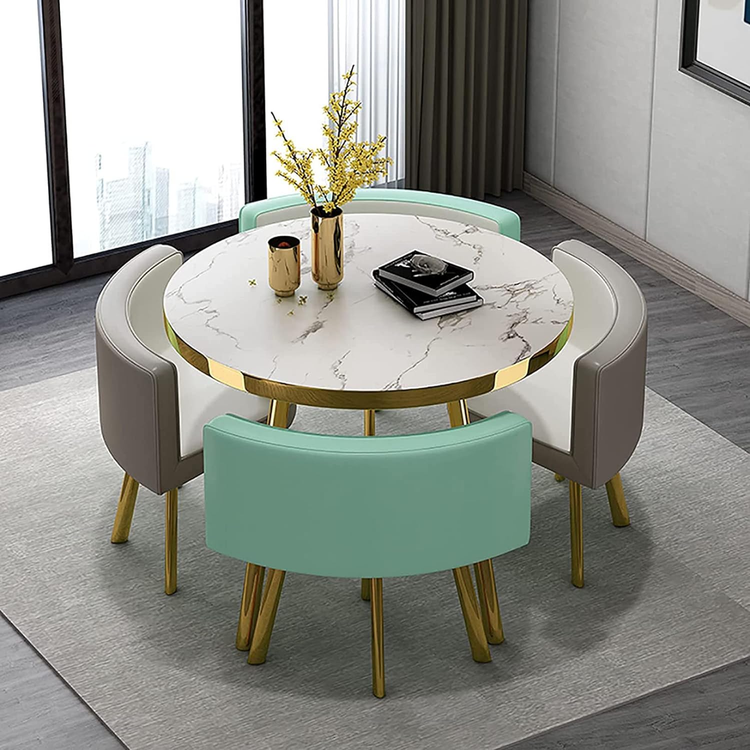 丸テーブルセットランキング 4人に適小さなスペースのキッチン用 ダイニングテーブルセット リビングルームラウンドダイニングテーブルとチェアバルコニーオフィ