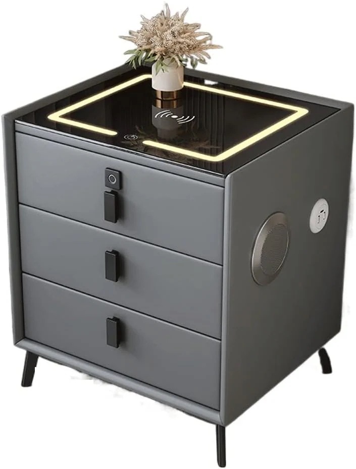 ナイトスタンド 現代のミニマリストのベッドサイドテーブル多機能の3層引き出しベッドサイドテーブルガラスカウンタートップランプサイドキャビネット ベッドサ
