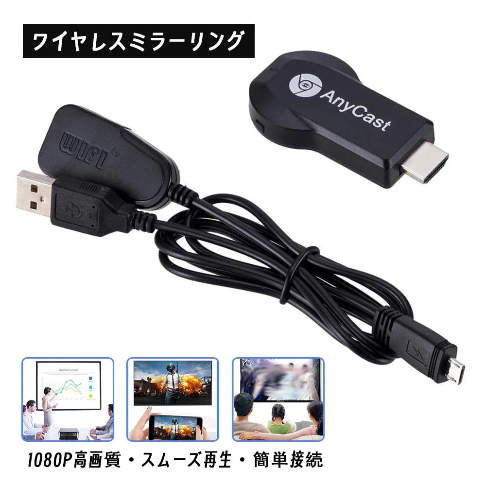 ワイヤレスミラーリング HDMI 簡単接続 1080P テレビにスマホ画面を映す スムーズ再生 遅延やカクつきなし iOS/Android対応 スマホ タブレット パソコン YB-03