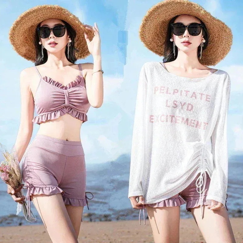 激安水着 レディース 体型カバー 露出控え 中学生 高校生 大学生 韓国 水着セット フィットネス 水着 スポーティー 3点セット セパレート タンキニ タンク ショートパンツ かわいい ワンピース水
