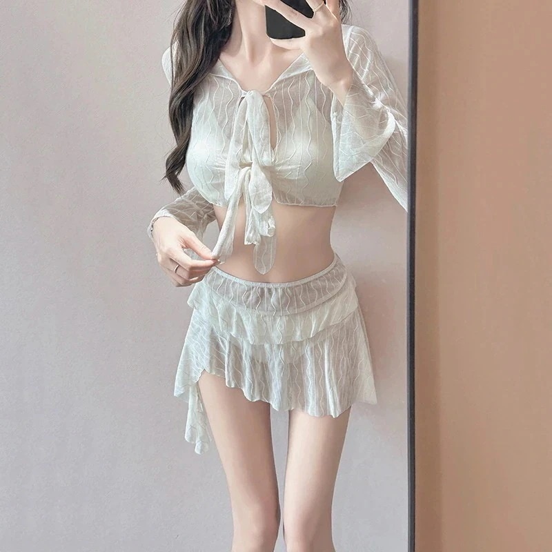 【4点セット】韓国のins 水着 レディース ビキニ2026新型高級感のある白セクシーなセパレート水着三亜リゾートスパ 温泉水着 体型カバー ワンピース水着