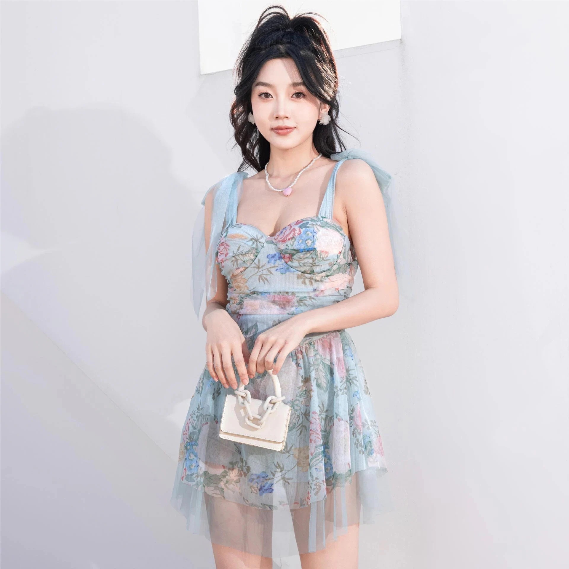 本日の限定商品水着 2026新型純欲風サスペンダー小花露背仙女範小胸を集めて温泉水着に浸かる レディースラッシュガード ワンピース水着