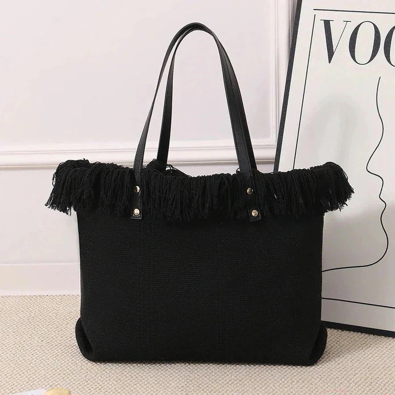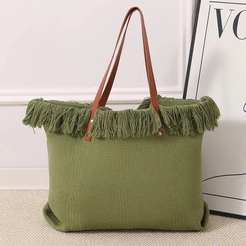 今年も人気!韓国 バッグ フリンジトートバッグ 大容量 シンプル ハンドバッグ ショルダー キャンバスバッグ 通勤用 編み込みビーチバッグキャンパストートバッグ