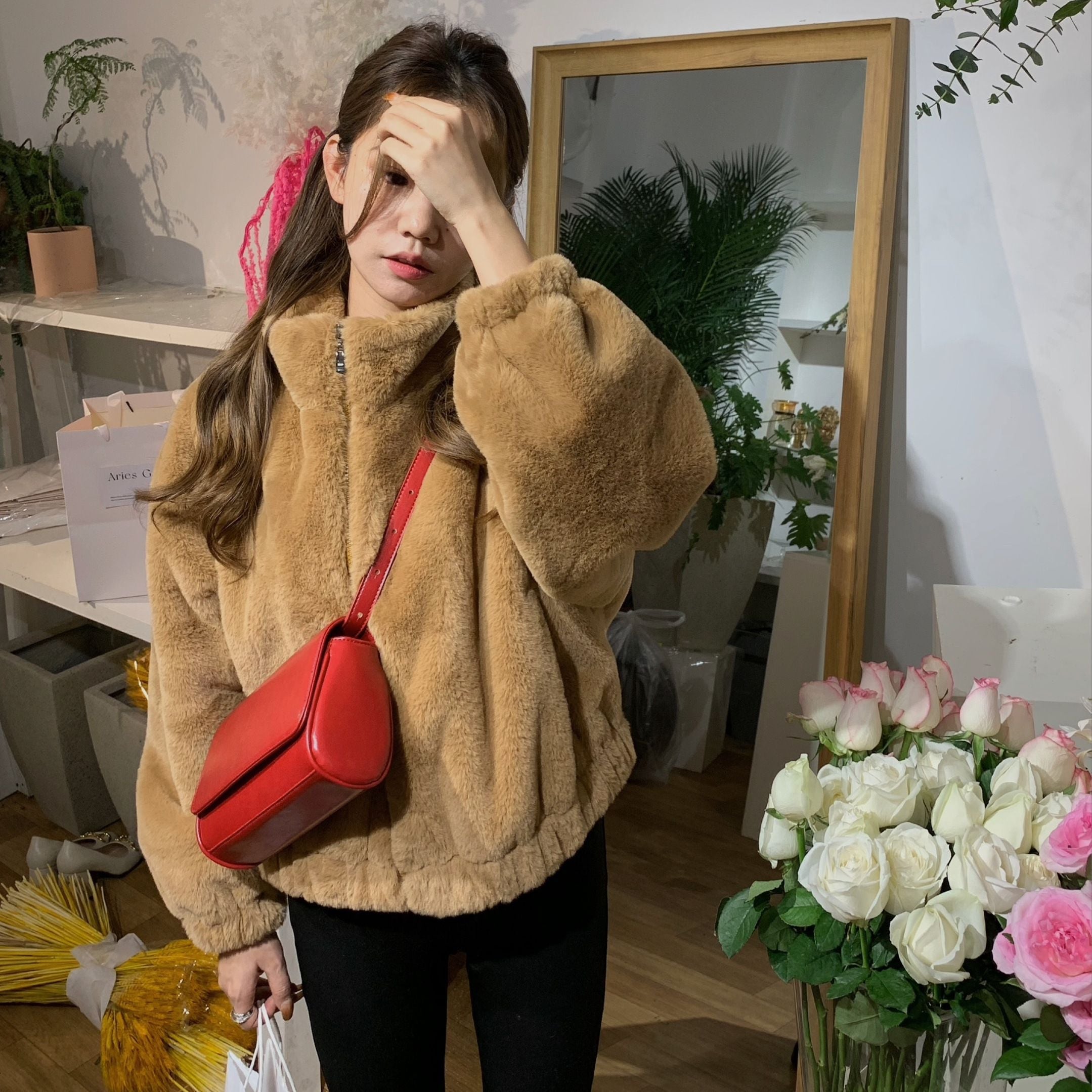 冬アウター かわいい毛皮の草コート女性厚手の保温コート冬のショート丈の上着 ジャケットジャンパー ブルゾンフェイクファーコート