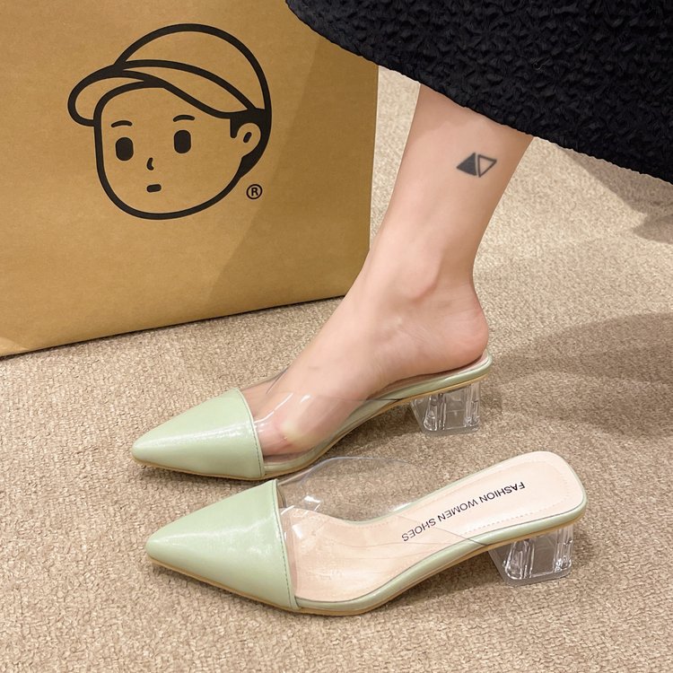 スタイルアップ!ヒールパンプス 韓国ファッション サンダル 気質厚いハイヒール女性 夏の新しい透明なファッション尖ったサンダル包頭スリッパ