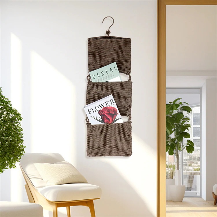早い者勝ち ボヘミアン風壁面収納タペストリー 3 段手作り編みネットデザイン 29cm×85cm 規格サイズ 寝室リビングの装飾収納に対応 3 色選べる