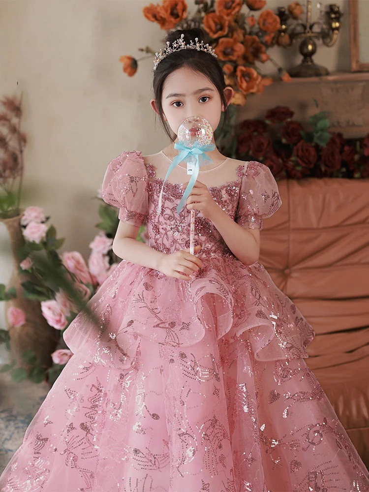 【3日出荷】新作 ピンクタフタ 女の子 司会 ステージドレス110/120/130/140/150/160