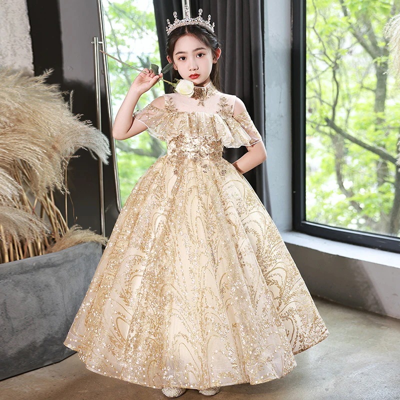 【3日出荷】シャンパン 子供ドレス 冬 新作 バースデー 花童 司会110/120/130/140/150/160