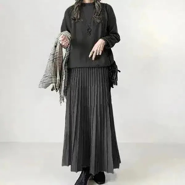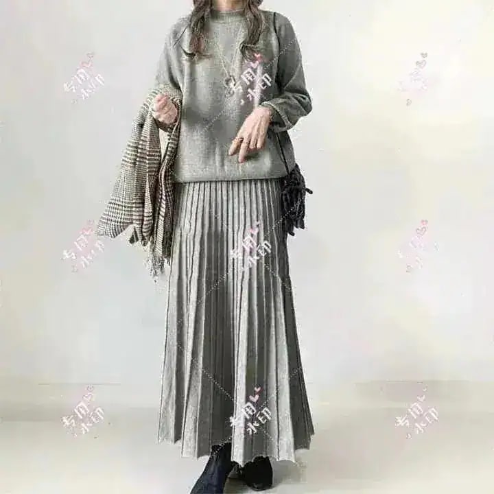 プリーツスカート 二点セット ギャザー セーター セットアップ 秋冬 ニット 長袖 無地7 レディース スカートセット