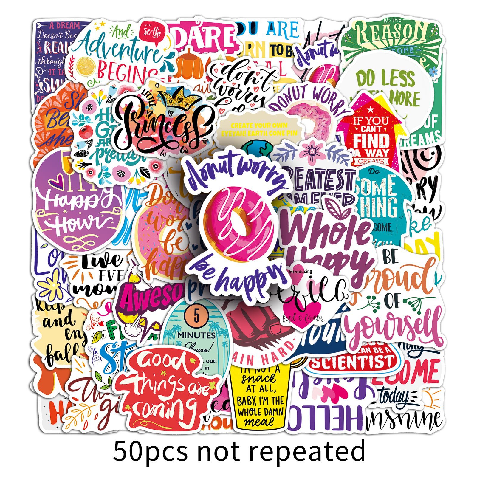 50 枚 励まし英語座右の銘シール カートゥーングラフィティ 防水 スーツケース / パソコン / ギター / 車用