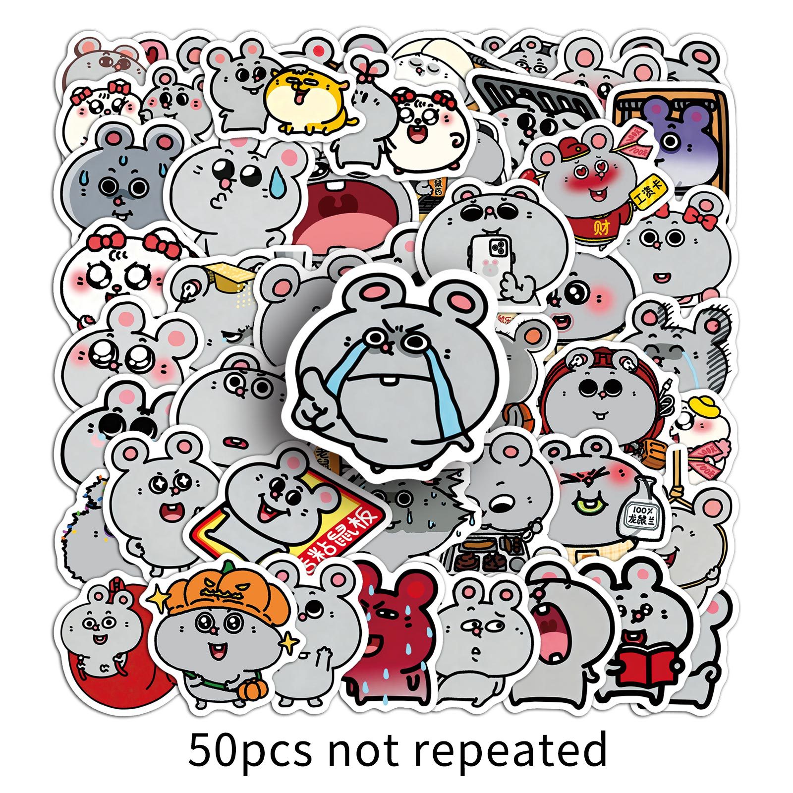 50 枚 メイキー & ビッグラットシール 可愛い動物柄 防水 手帳 / ギター / 冷蔵庫用 卸売り