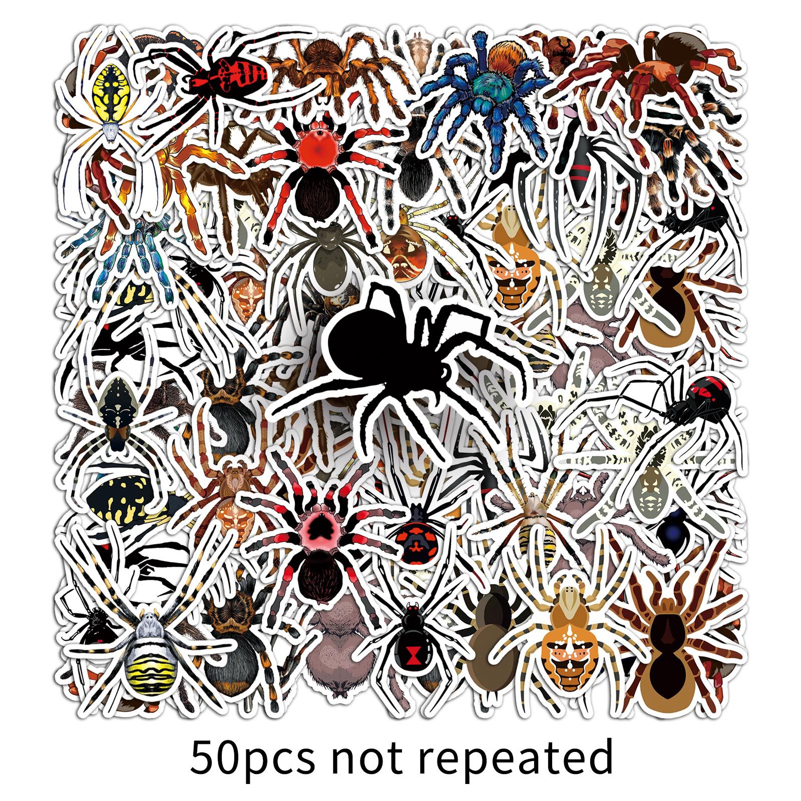 50 枚 クモカートゥーンシール 昆虫動物柄 ホラー調防水 ノート / パソコン / 文房具用デコ
