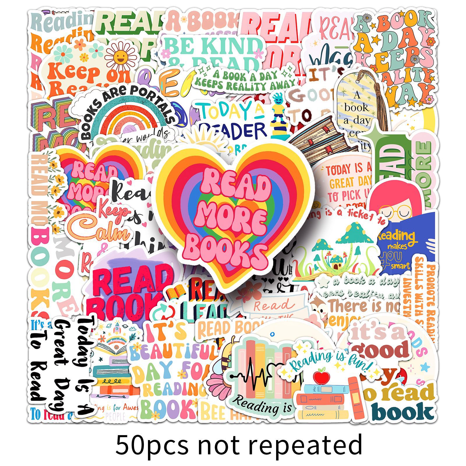 50 枚 読書好き励ましシール ポジティブ英語フレーズ 防水 手帳 / 魔法瓶用デコ