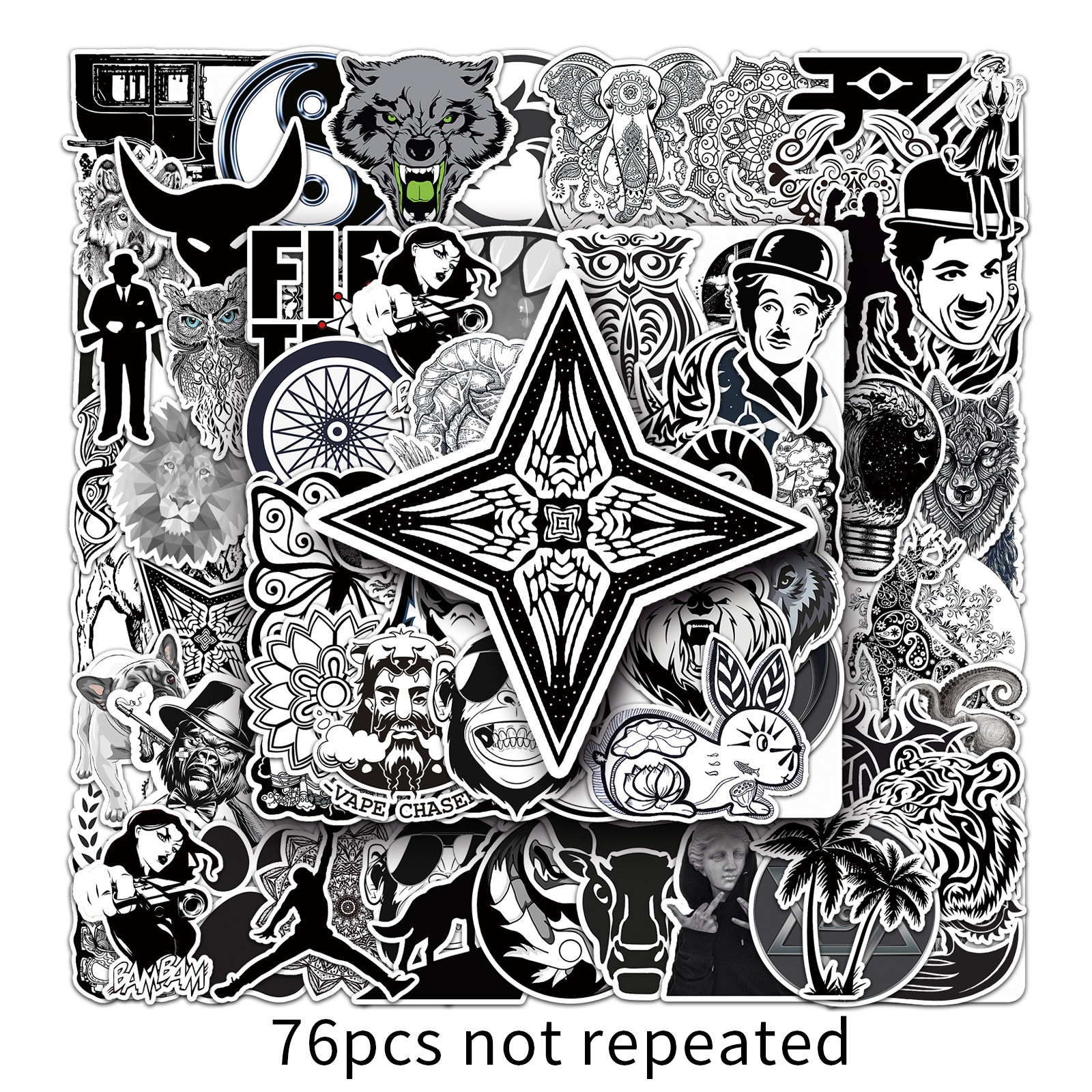 76 枚 黒白カートゥーン全種類異なりシール 防水グラフィティ スーツケース / オートバイ / 冷蔵庫 / パソコン用