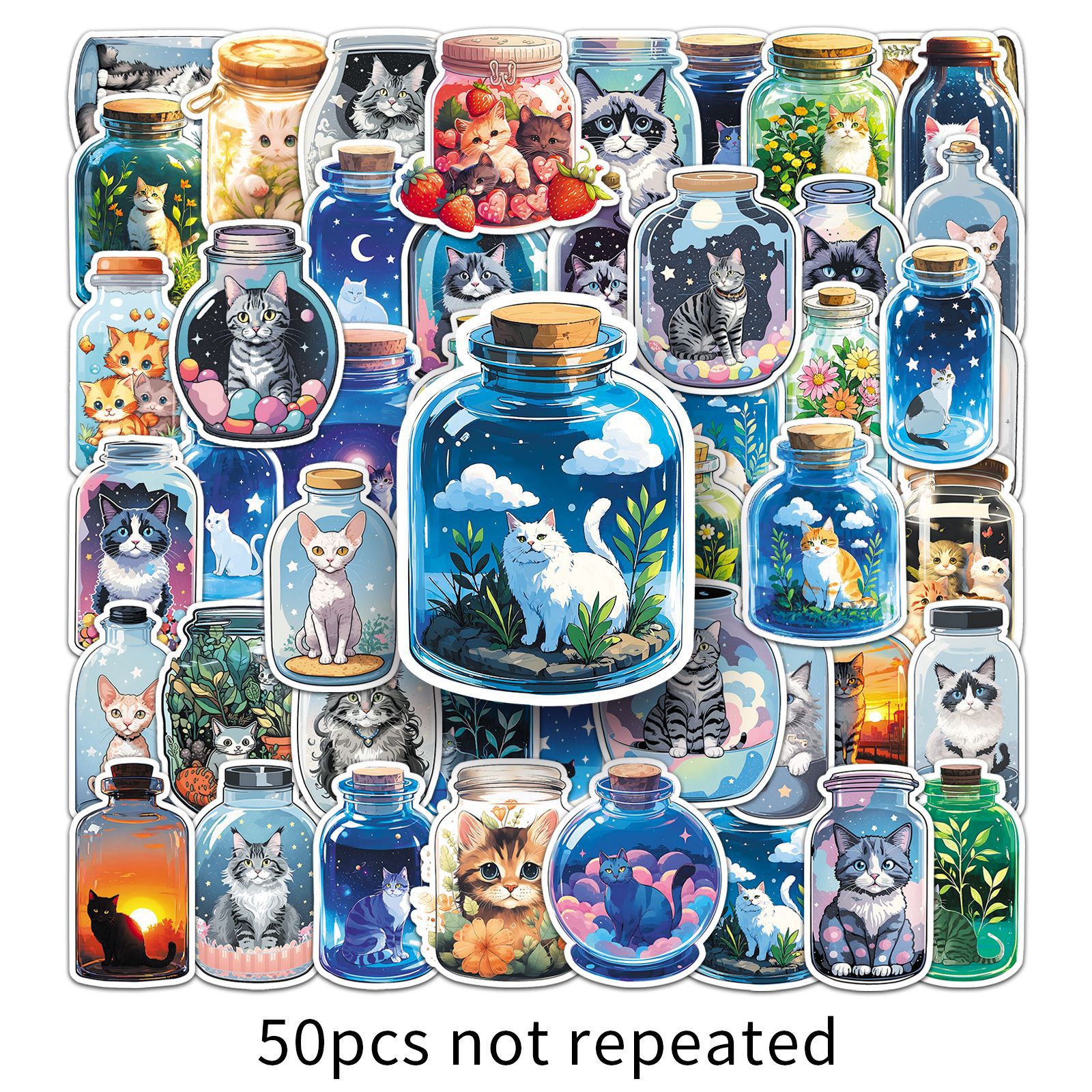 50 枚 瓶の中の猫シール 森系萌えペット高清柄 防水 手帳 / ミルクティーカップ / グカ / スマホケース用