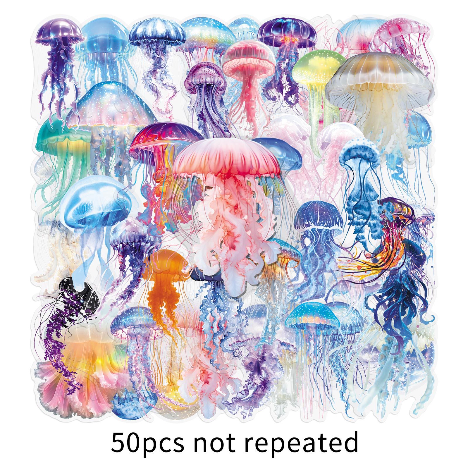 50 枚 クラゲシール カラフルグラフィティ個性柄 防水透明 ギター / 冷蔵庫 / デスク / イヤホン用