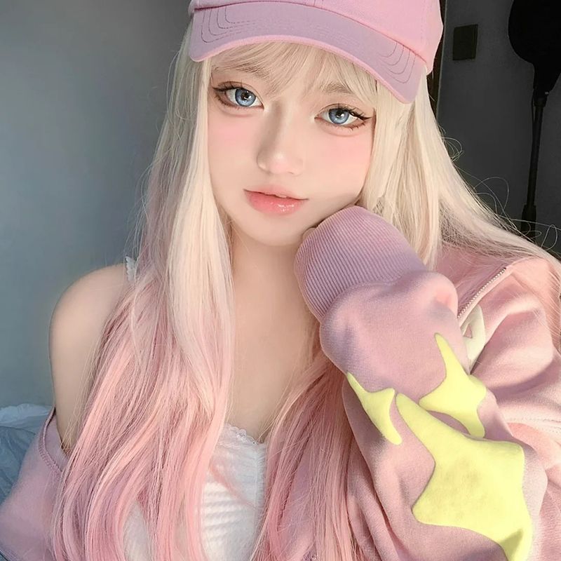 【品質良い 大好評中】ロングウィッグ グラデーションウィッグ レディース 小顔 かつら フルウィッグ ピンク ウィッグ ロング ストレート ぱっつん前髪 ロリータ 原宿風 韓国風 コスプレ 可愛い コ
