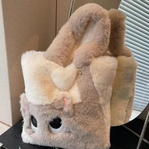 新作 ねこキャラ 刺繍 配色デザイン ボアトートバッグ レディース ショルダー クロスボディ ハンドバッグ