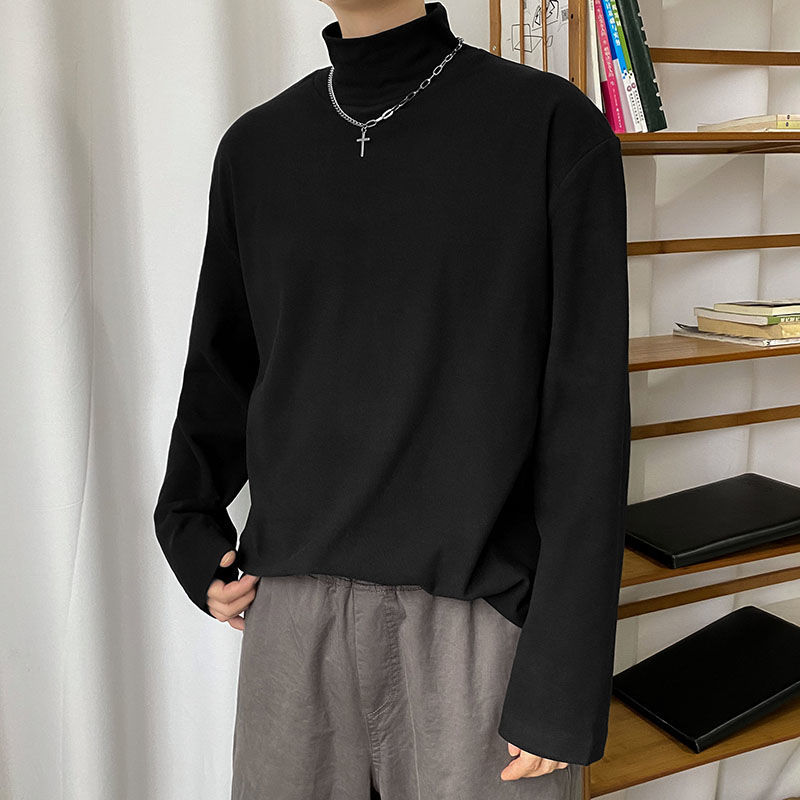 長袖 裏起毛 メンズ 秋冬 ゆったり 純色 インナー ヴィンテージ 港風 ハイネック ボトミングシャツ大人気-29