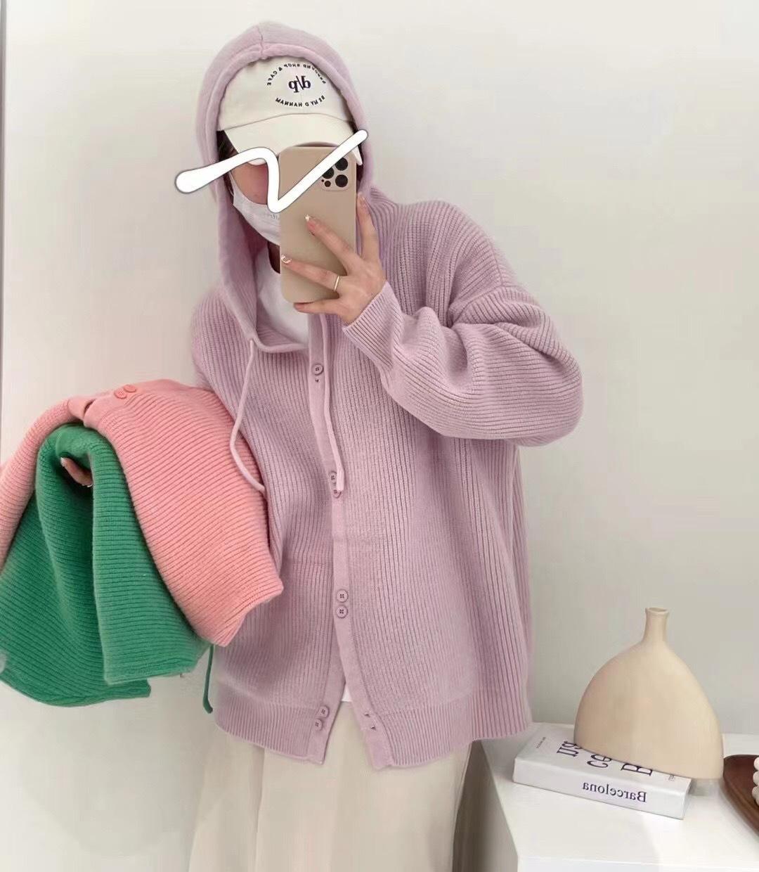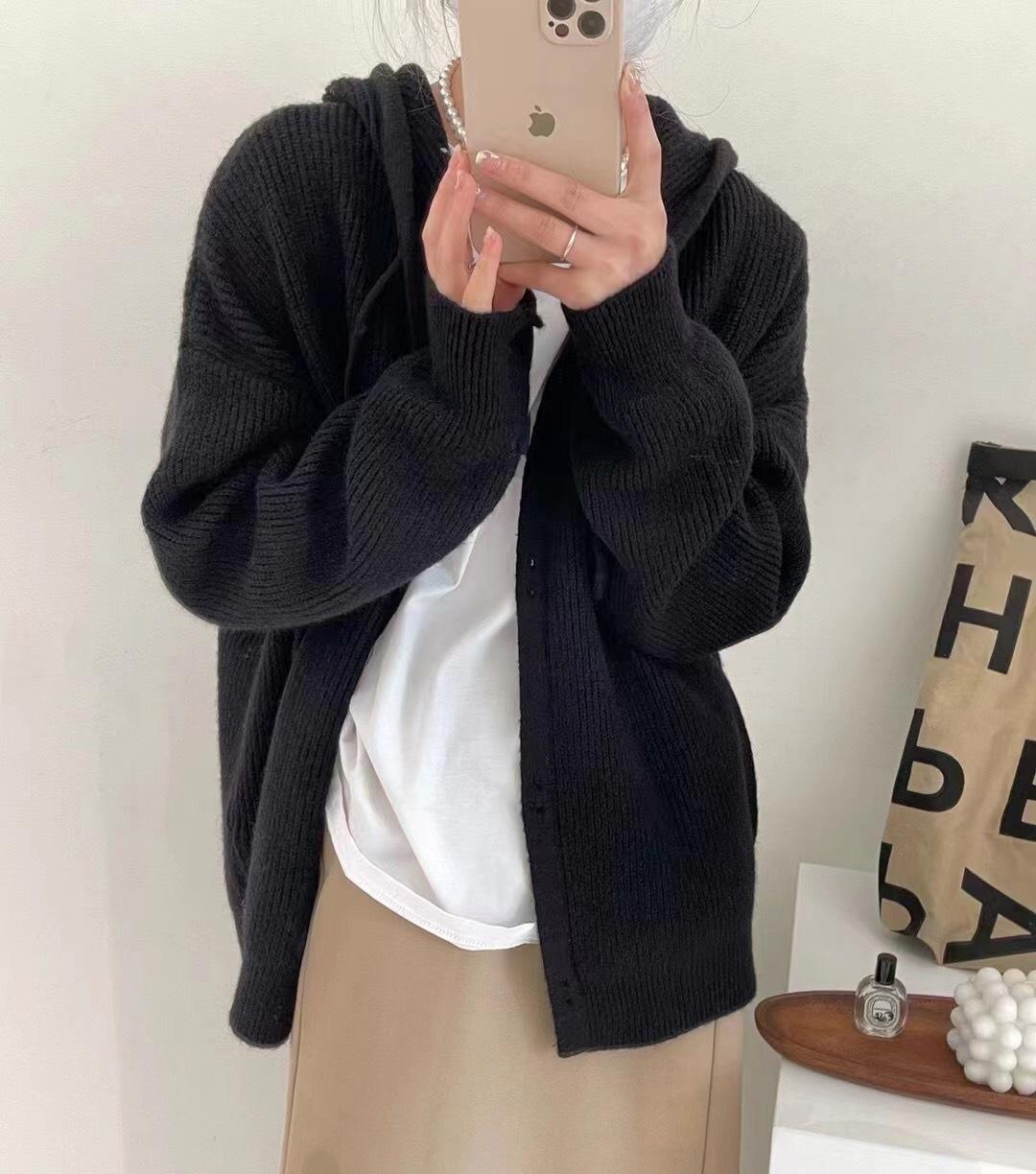 【厳選 カーディガン】フード付き 怠惰な風 秋冬 おしゃれ 気質 ニットカーディガン Vネック トップス AWアウター セーター ベーシックニット ラウンドネックニットセミカシミヤタッチ
